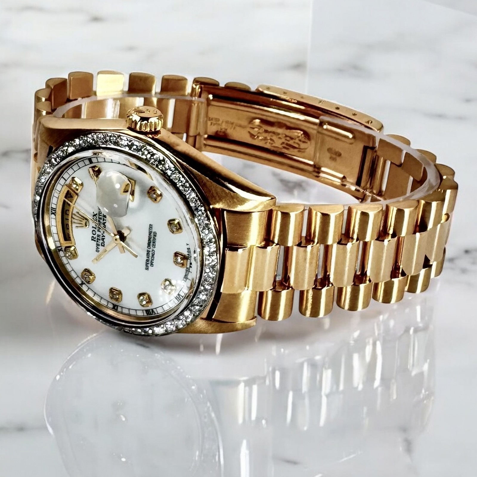 | Dial: | Mother Of Pearl, Diamonds Markers, Custom |