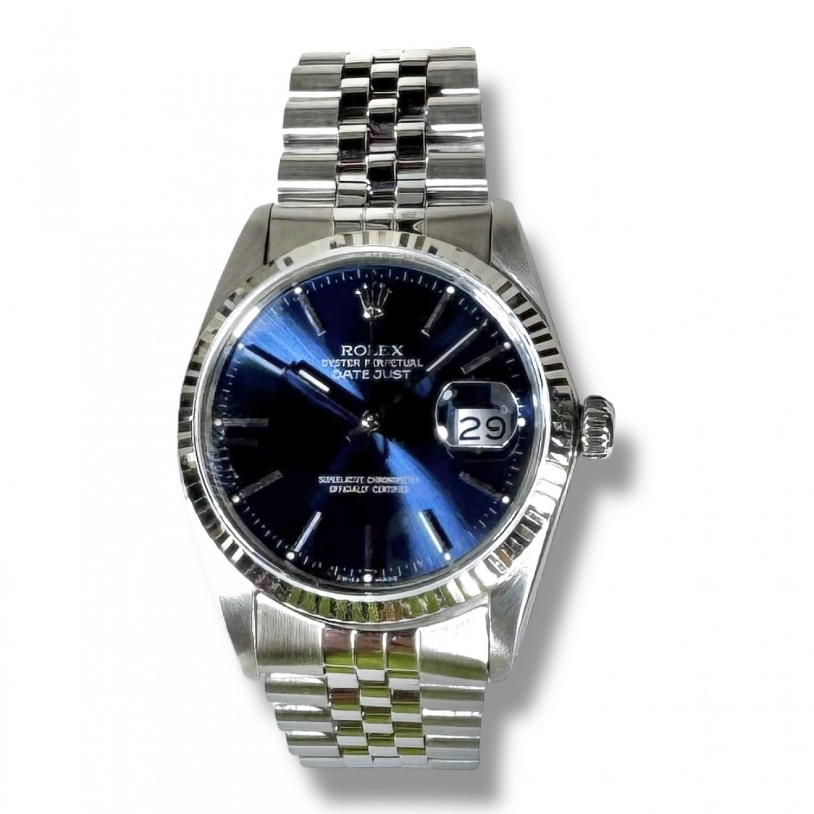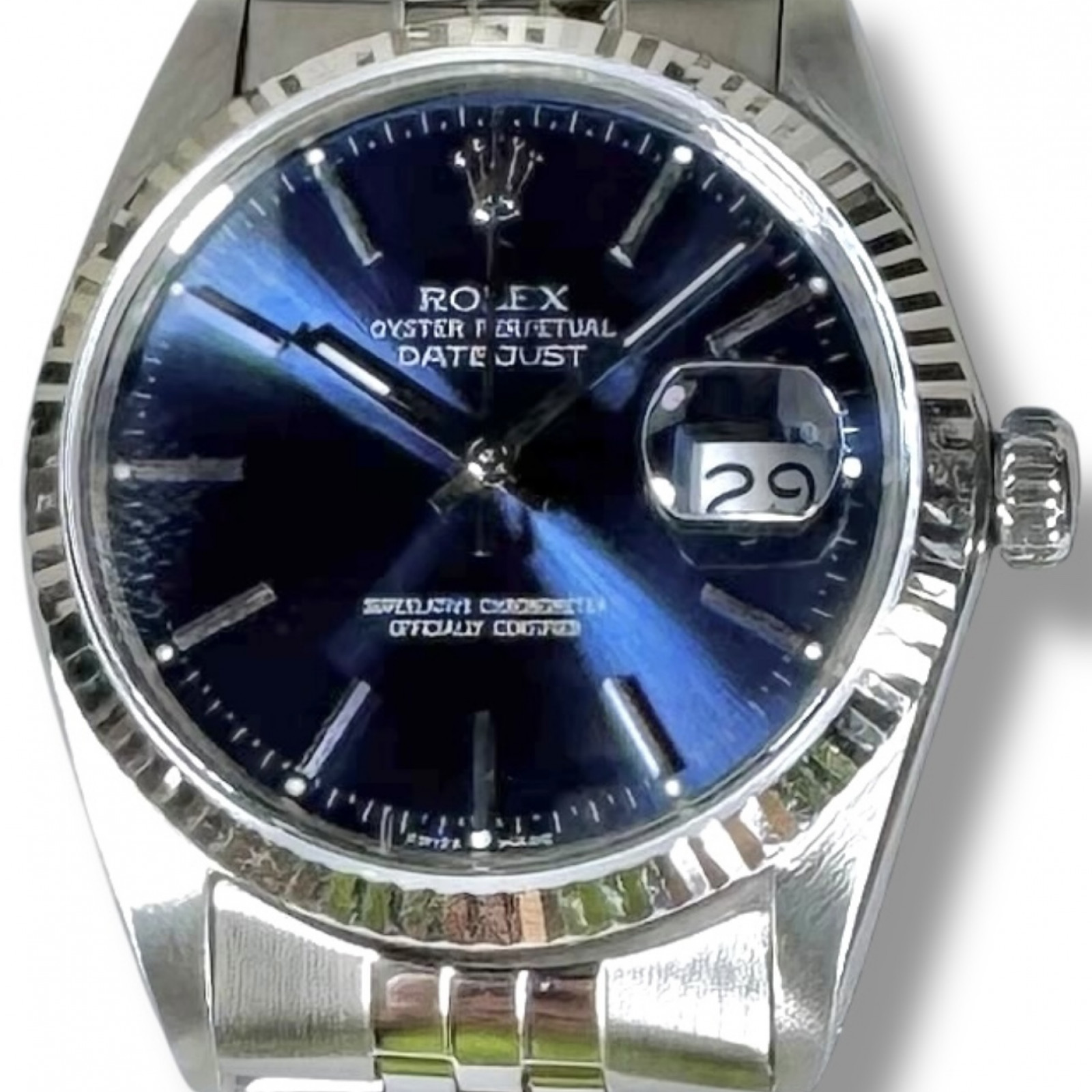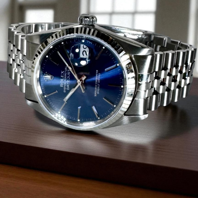 Metatag for search engines: Rolex Datejust 16014, Blue dial, Jubilee Bracelet, Sapphire Crystal, Luxury Watch, Timeless Style, Scratch Resistant, Durable Design.