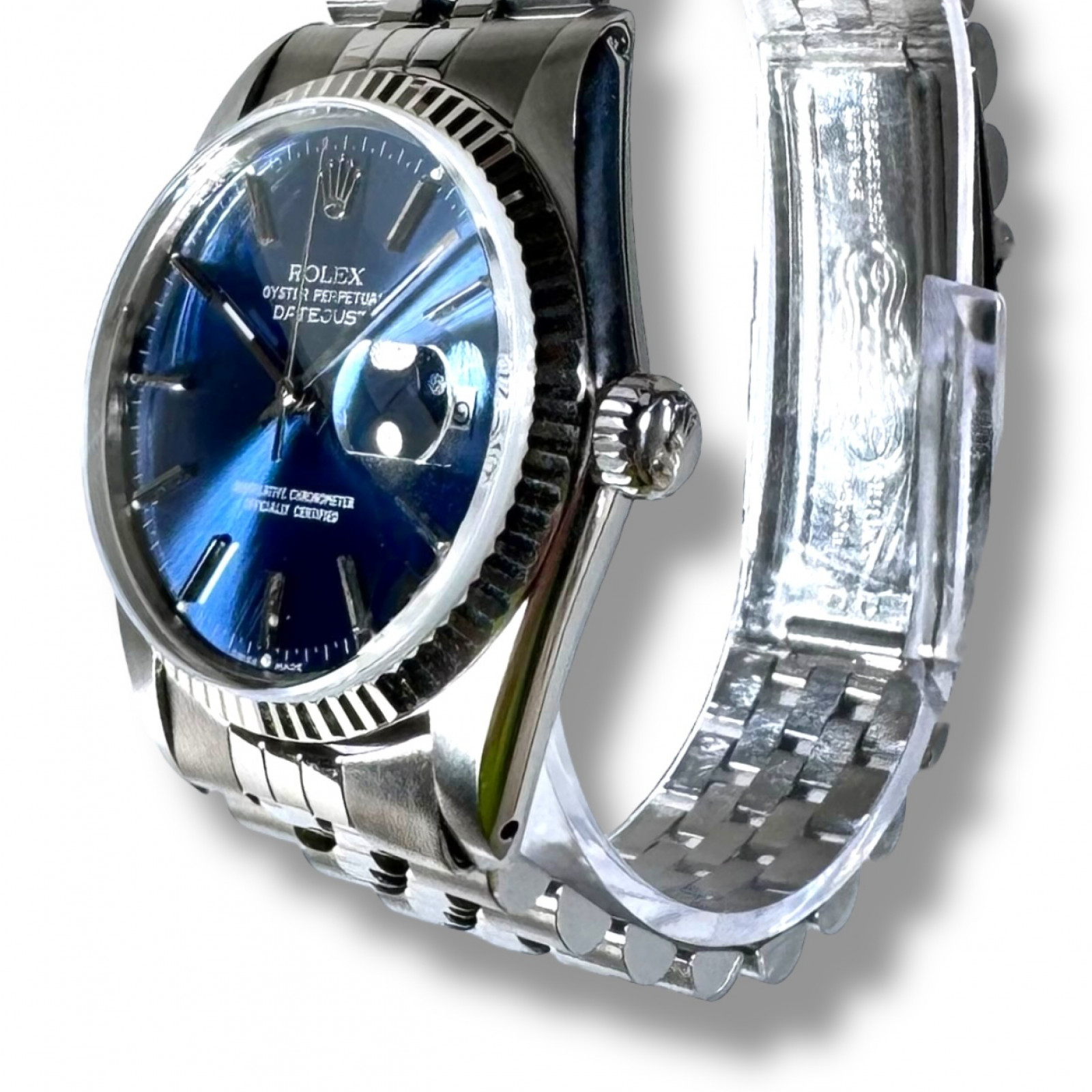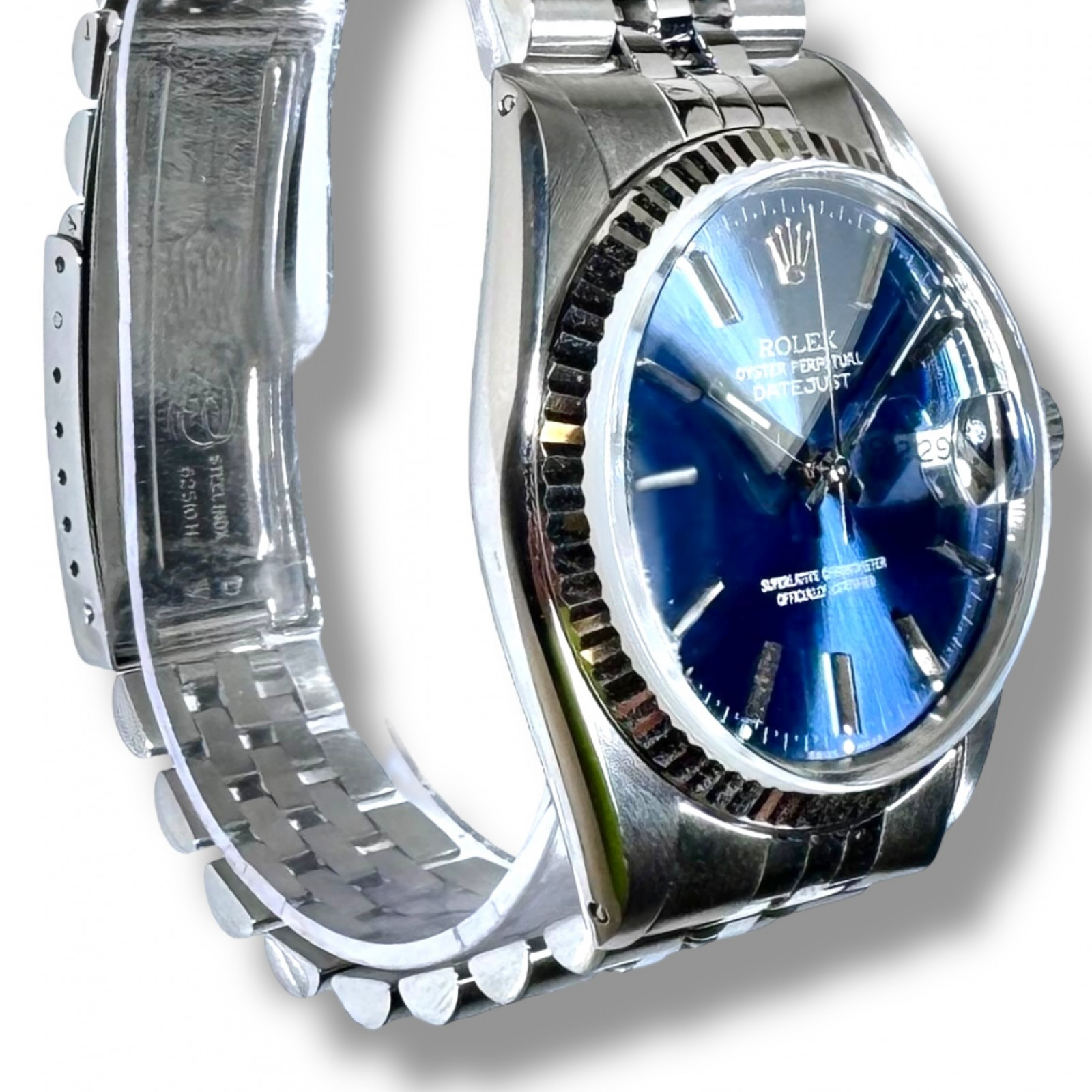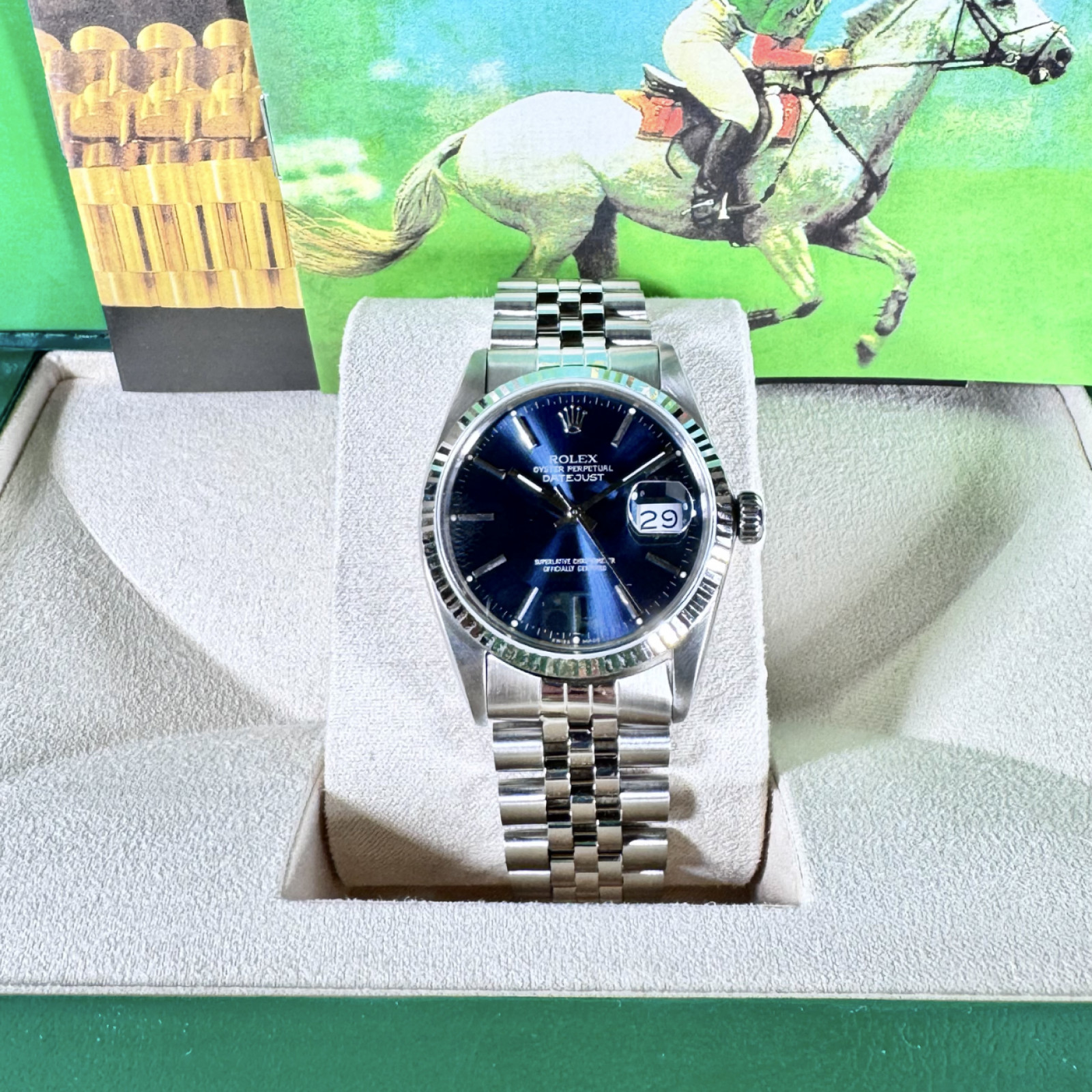 Metatag for search engines: Rolex Datejust 16014, Blue dial, Jubilee Bracelet, Sapphire Crystal, Luxury Watch, Timeless Style, Scratch Resistant, Durable Design.