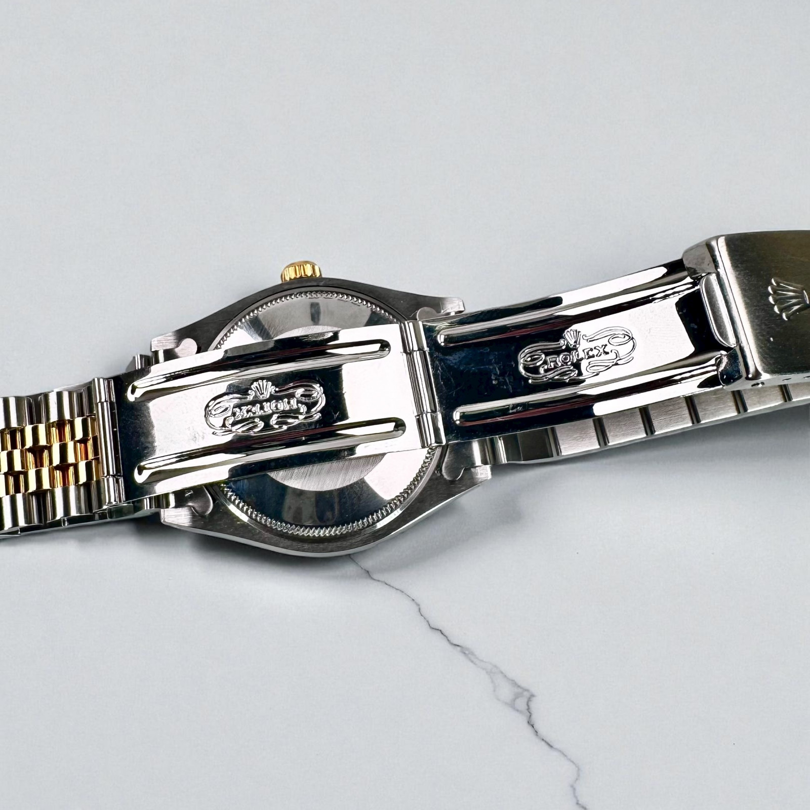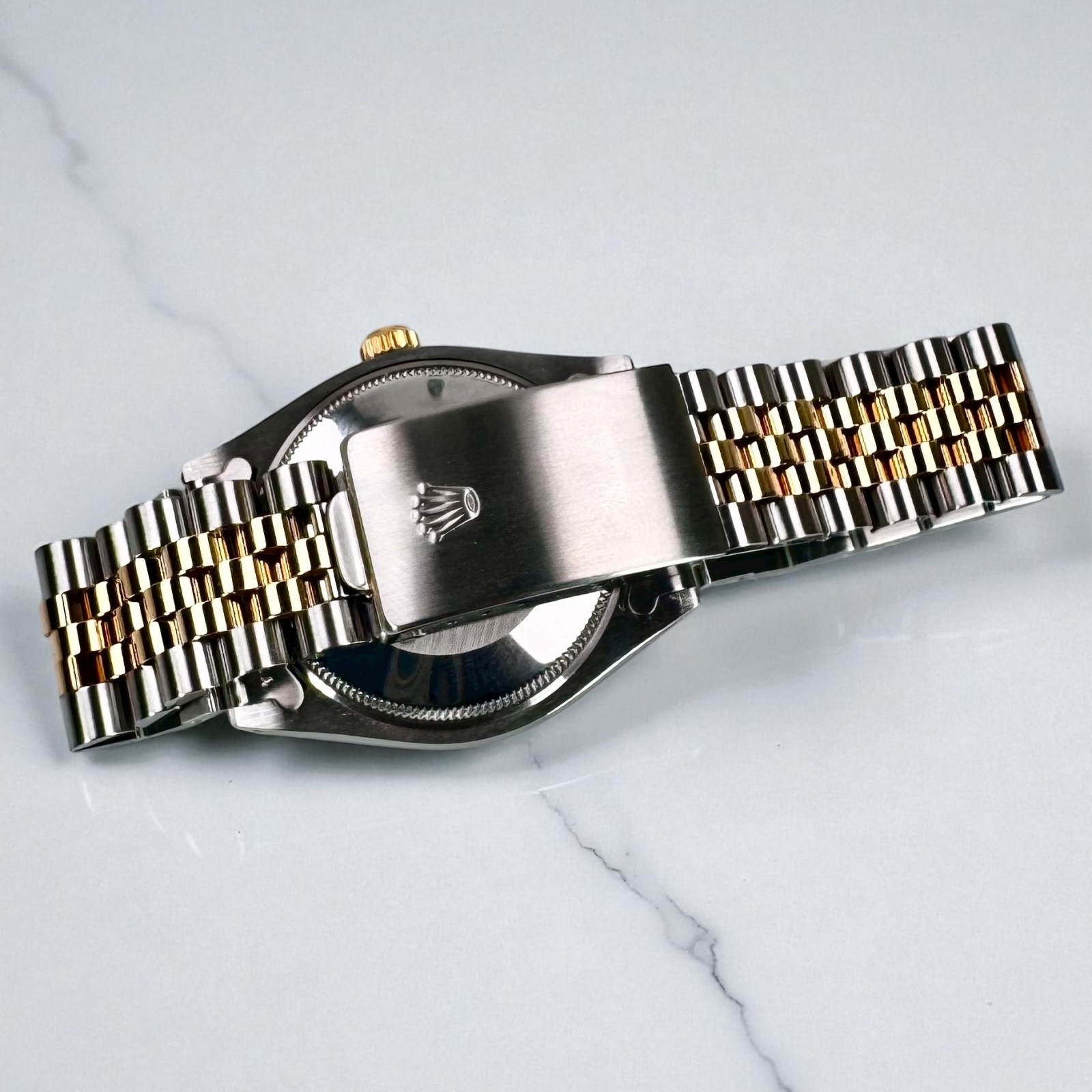 Accompanying the golden case is an impressive jubilee bracelet. Made of intertwined links of high-quality 18k gold and stainless steel, the bracelet has been designed for both comfort and style. Its intricate design reveals an elaborate pattern that adds a timeless elegance to the watch, making it apt for all occasions, whether casual or formal.