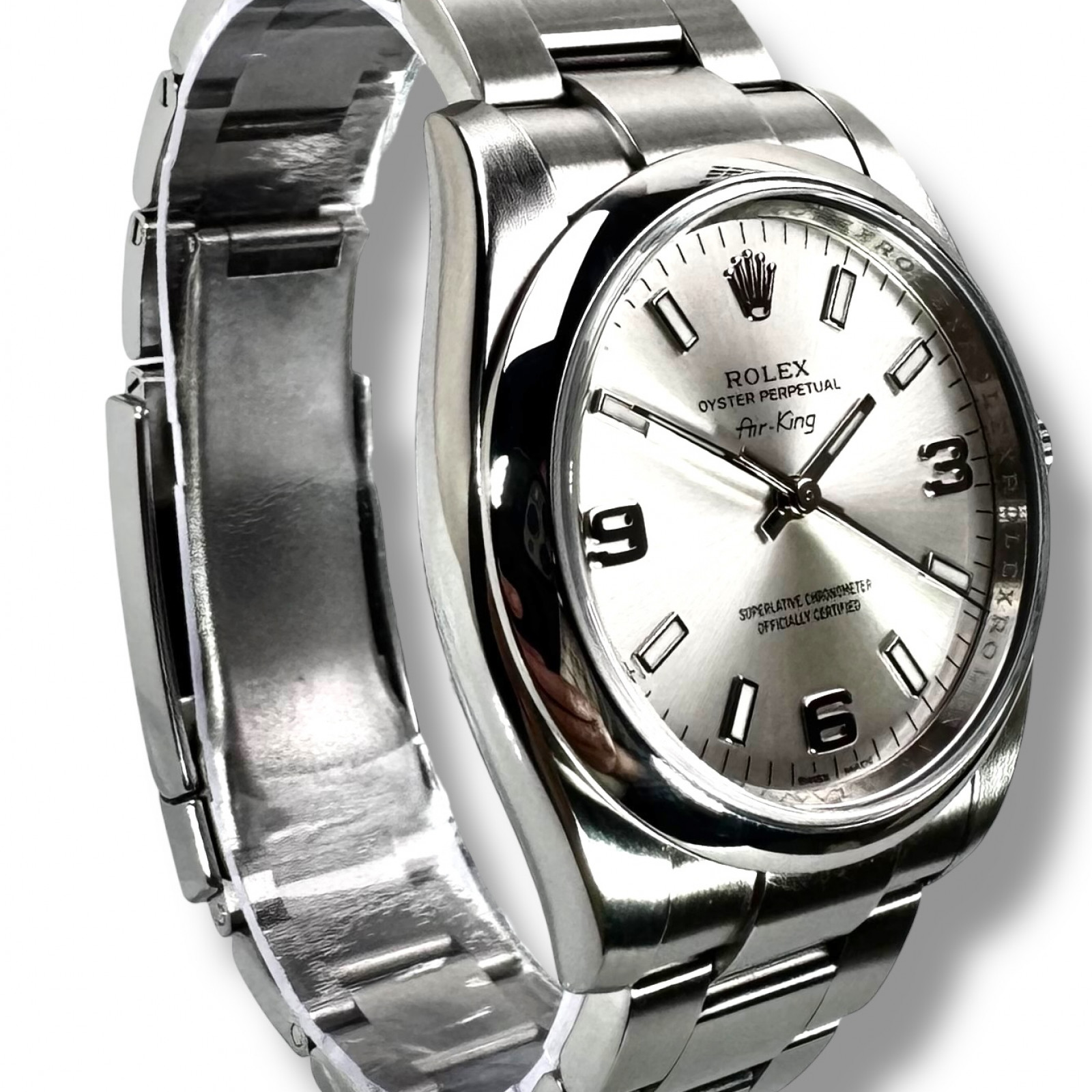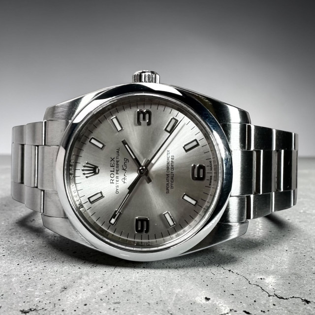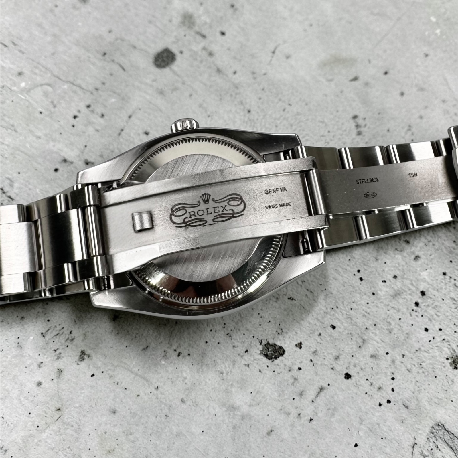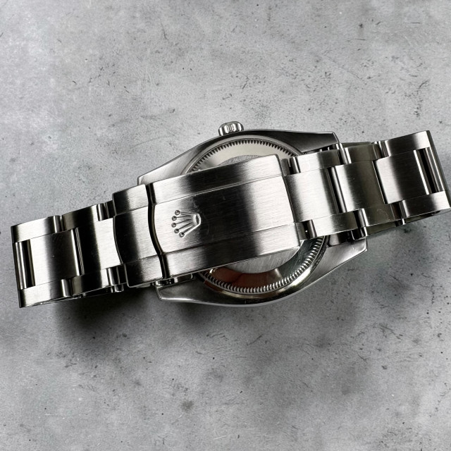 Beyond its robust, meticulously polished façade, the Oyster Perpetual 114200 is powered by the steadfast Caliber 3130 movement. This superior automatic, self-winding mechanism, custom-designed by Rolex, holds high esteem for its unsurpassed accuracy, dependability, and toughness. Making the Oyster Perpetual 114200 an unparalleled selection for the discerning connoisseur and an essential for any watch collection.