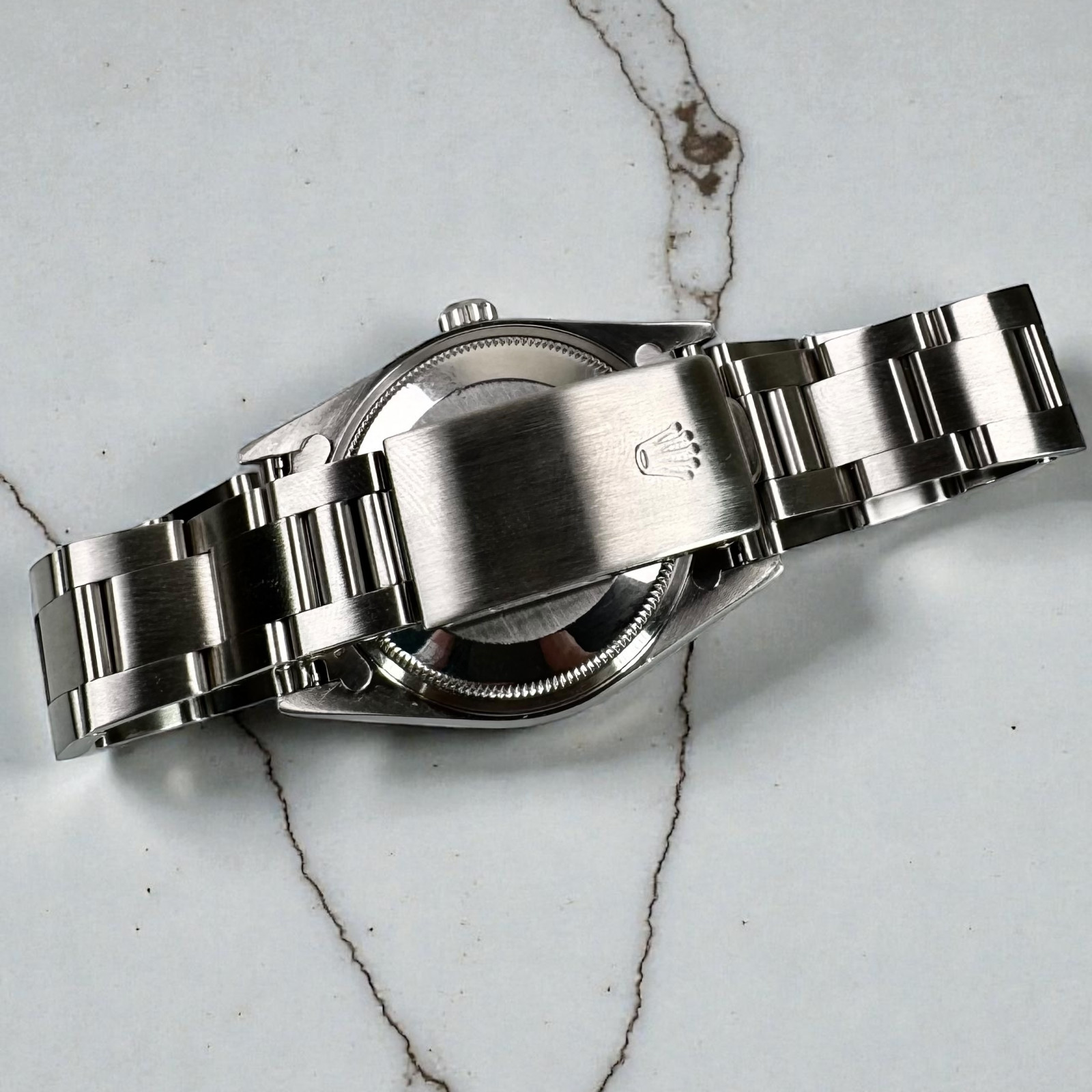 Powering this extraordinary wristwatch is none other than the Rolex's flawless Caliber 3130 movement. A self-winding mechanical marvel that equips the Air-King 14000 with extraordinary precision, unmatched reliability, and sustaining longevity. This efficient movement not only powers the watch but also provides an impressive 44-hour power reserve, often outlasting periods of inactivity without compromising on its consistency.