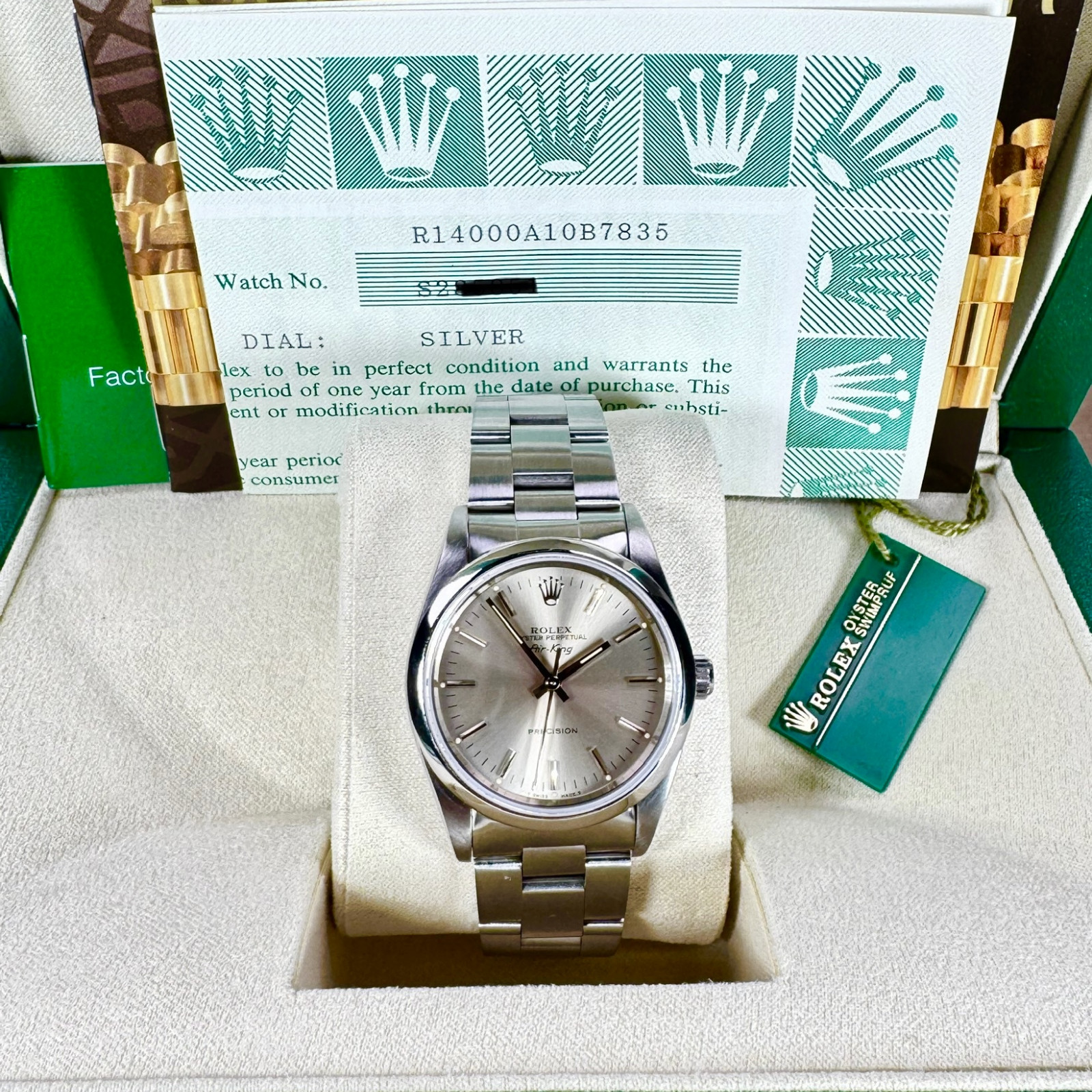 In summary, the Rolex Air-King 14000 stands as a shining beacon of Rolex's quintessential style, combined with the highest order of functionality. It's a crystal-clear demonstration of Rolex's renowned expertise in the field of watchmaking. Whether you're a discerning watch collector, an outdoor adventure enthusiast, a business professional, or someone who simply admires refined craftsmanship, the Air-King 14000 is indeed a timepiece for one and all, inspiring and demanding respect, appreciation, and admiration alike.