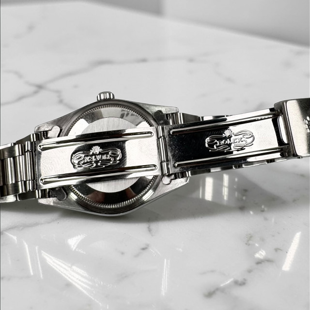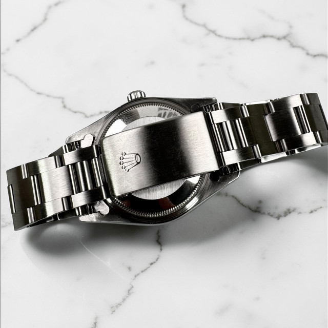 Housed within a robustly crafted solid stainless steel case, standing 34 mm in size, the watch brings together the best of classic dimensions and modern design. Sheltered within this robust case is the impeccable and reliably precise Rolex self-winding mechanism, the renowned Calibre 3000. This is a robust mechanical movement treasured for its efficient performance and reliability.