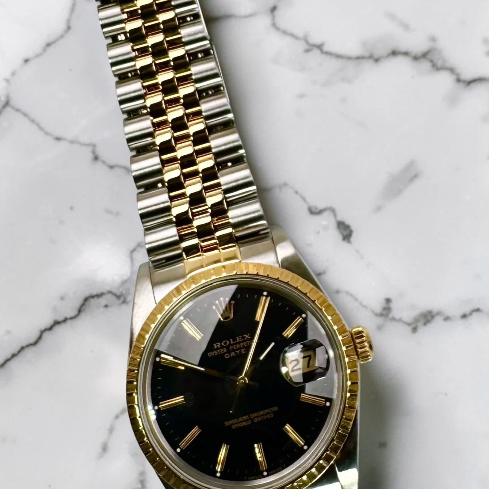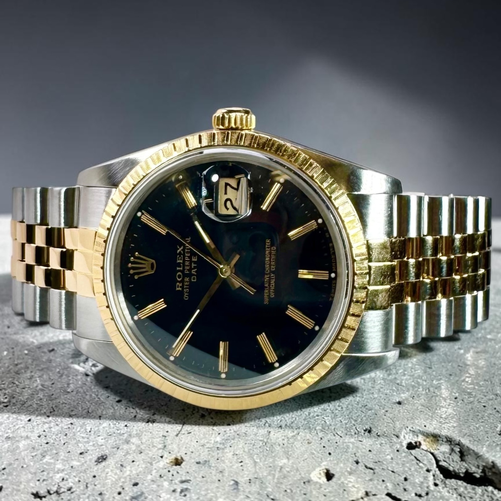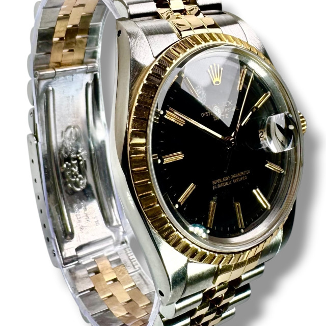 Presenting the elegant and classic Rolex 15053, complete with its authentic black dial that effortlessly exudes a sense of timeless sophistication and panache. This exquisite model is a sacred artifact in Rolex's rich heritage, carrying forward the remarkable traditions established with the initial launch of the ground-breaking Datejust watch in the year 1945. The Datejust was introduced as a commemorative piece to celebrate the company's significant 40-year milestone, and its contribution to the horology world was momentous. Featured as the world’s first watch to offer an automatic date changing function, it set pace for numerous technological innovations to follow.