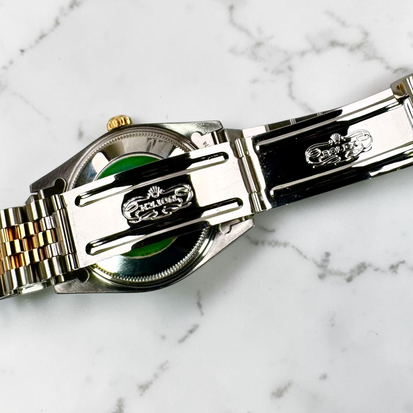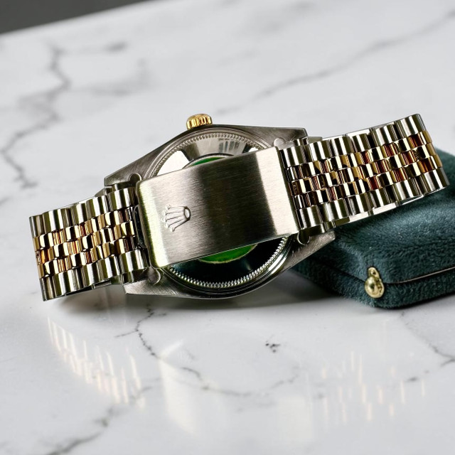 This majestic piece is accompanied with the exceptionally durable Jubilee bracelet, an embodiment of Rolex’s Model 62523. Having been designed originally for the Oyster Perpetual Datejust in 1945, the Jubilee bracelet substantially enhances this model's classical appeal while promising an unparalleled comfort on the wrist. The bracelet’s robust five-piece link design represents a perfect harmony of form and utility. This iconic design is celebrated globally as being one of the most recognized across all Rolex bracelet variations.