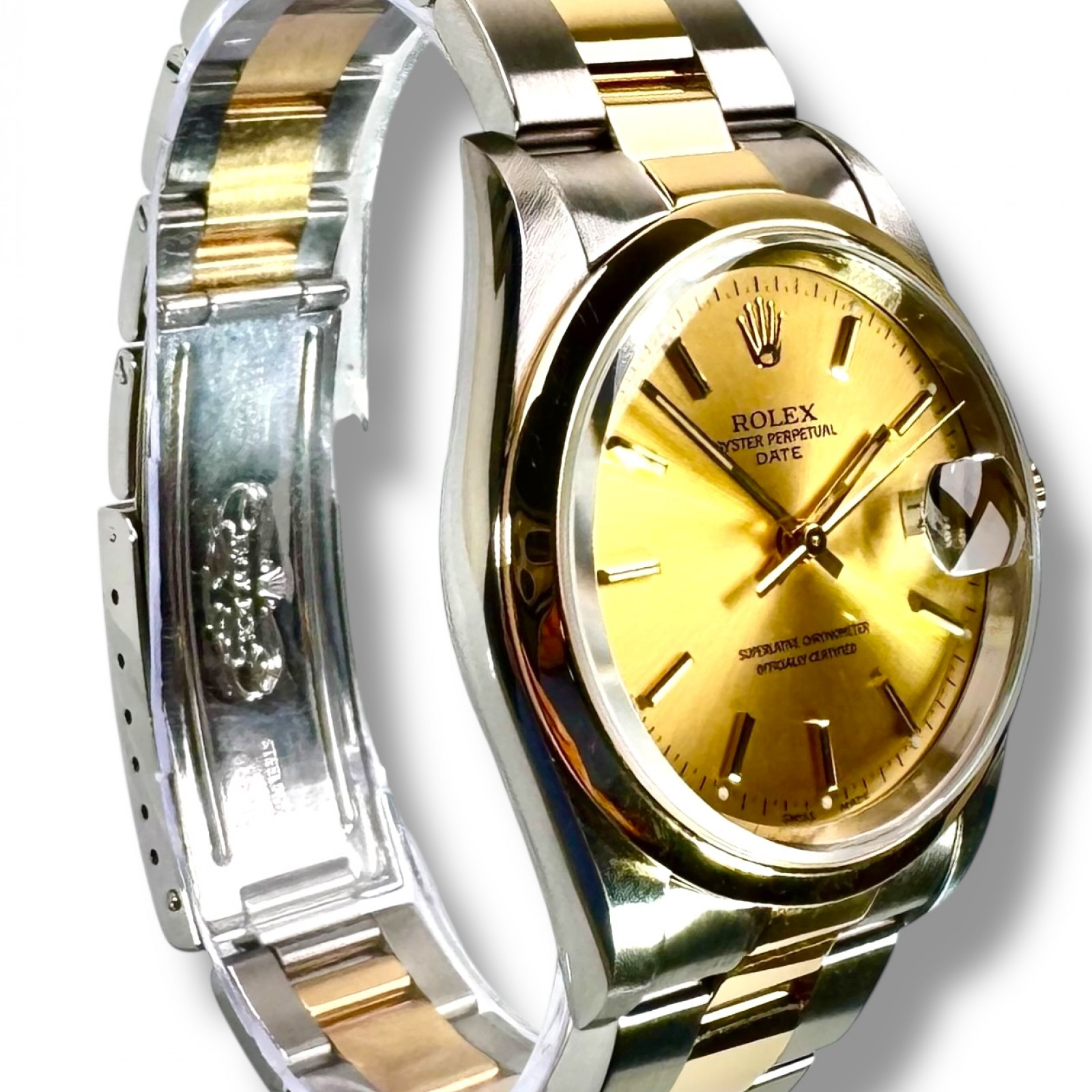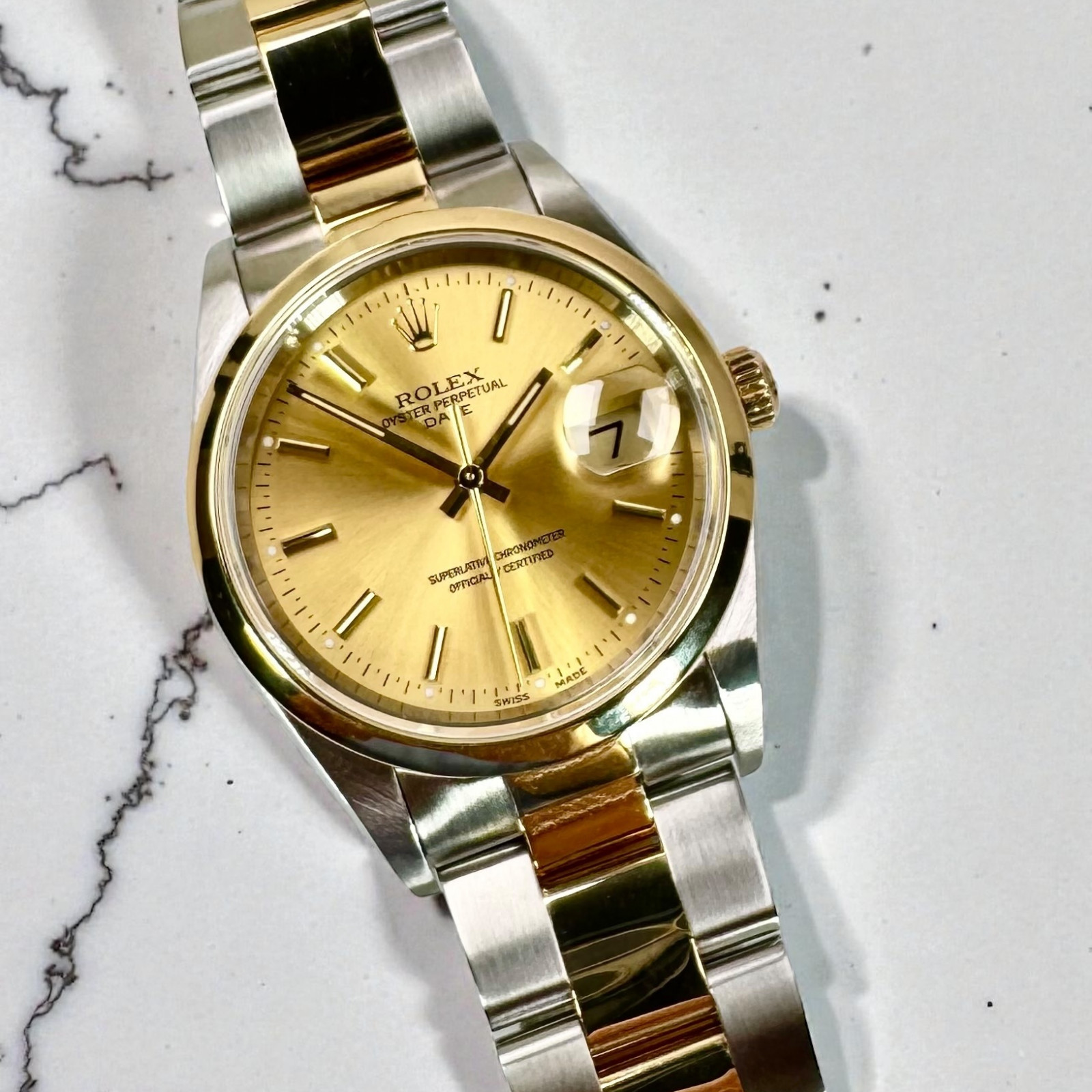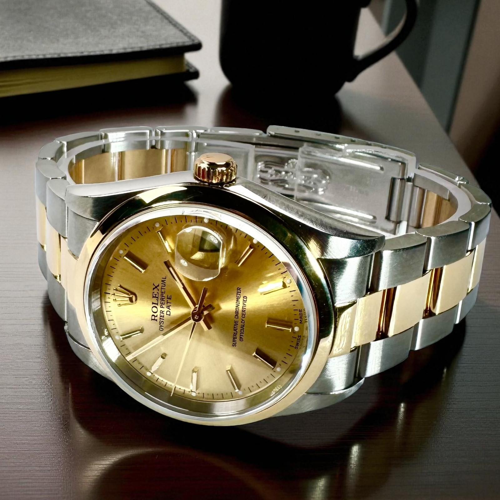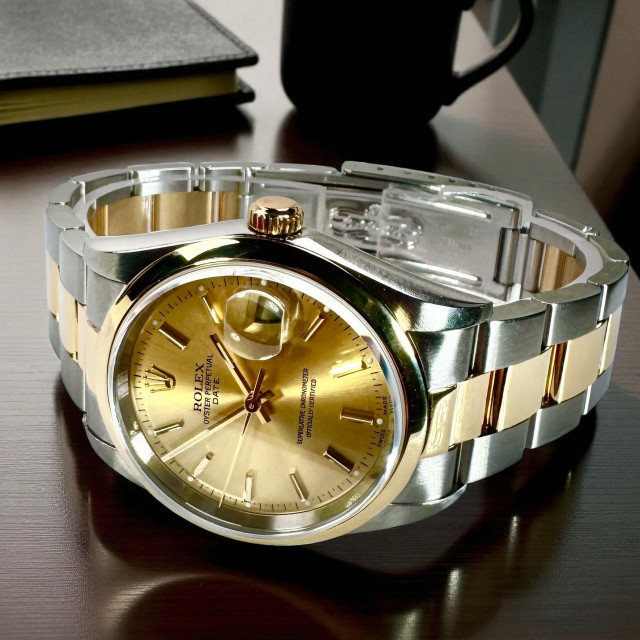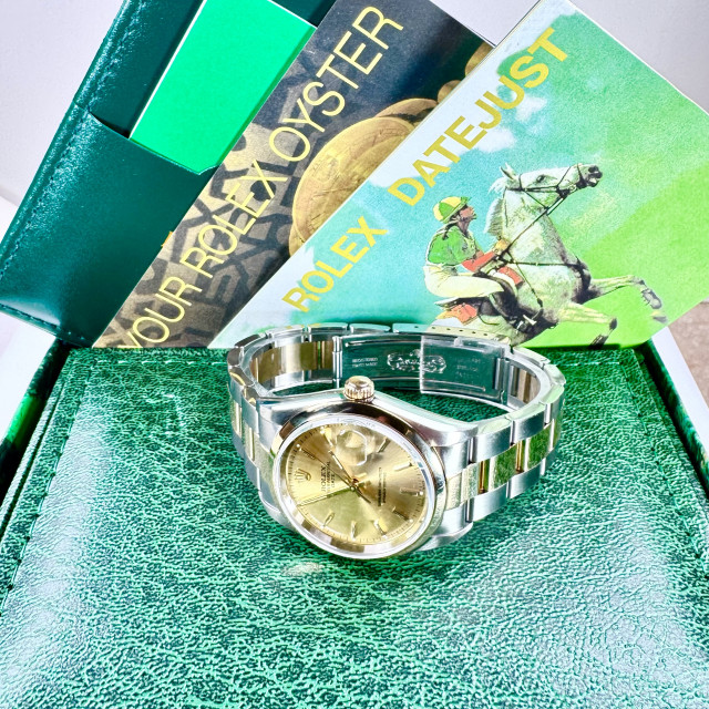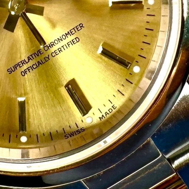 The watch itself sports an illustrious Champagne dial that allows the Rolex Reference 15203 to stand out prominently, a fitting tribute to both simplicity and class.