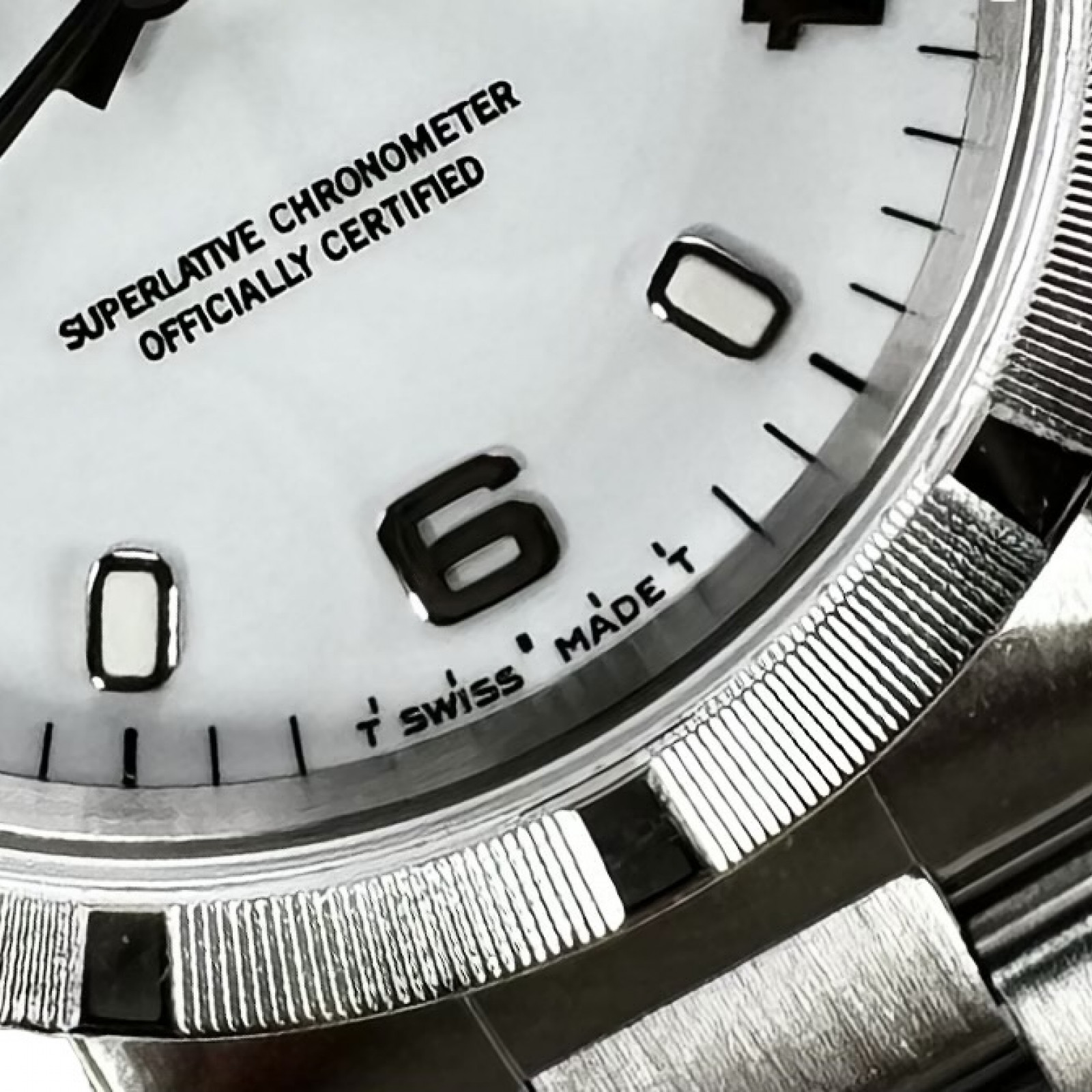 The Rolex 15210 circles the wrist with its notorious oyster bracelet, an intricate spread of unified links designed for a comfortable yet firm hold. This band oozes with a stylistic expression encompassing not just utility, but also a refined sophistication symbolic of Rolex's exquisite engineering.