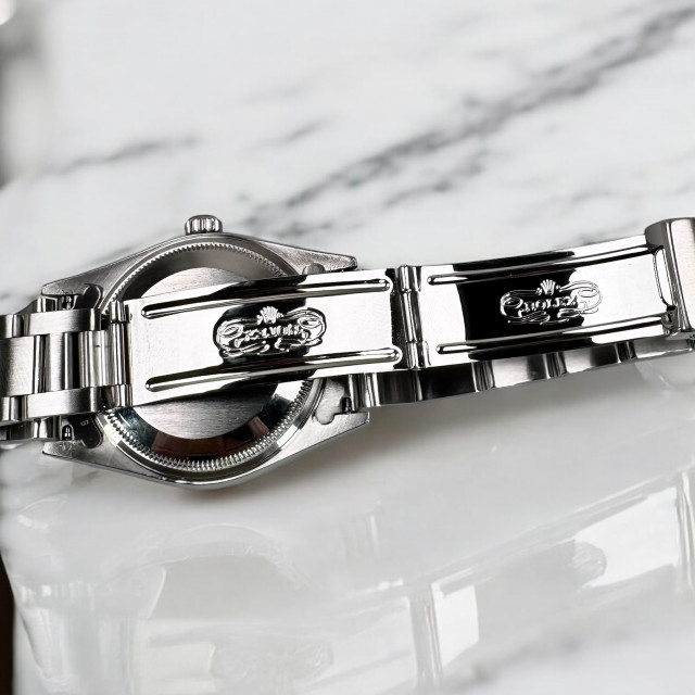 Seamlessly looping this luxurious timepiece onto the wrists of watch aficionados worldwide is the Rolex 15210's famously distinguished oyster bracelet. This intricate network of meticulously unified links is designed to provide a snug yet comfortable grip. Emanating an aura of refined sophistication and practicality, the oyster bracelet is a sparkling demonstration of Rolex's ceaseless dedication to superior craftsmanship.