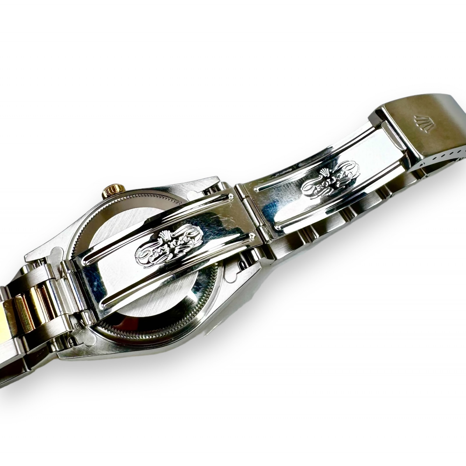 The Rolex 15223 mirrors its refined internals through its classy exterior design. Featuring an Oyster bracelet crafted from a stunning amalgamation of Stainless steel and plush 18 KT gold, this timepiece dons an elegant two-tone attire. The bracelet, identifiable by its reference number 62523, adds a layer of opulence to the watch's overall presentation.