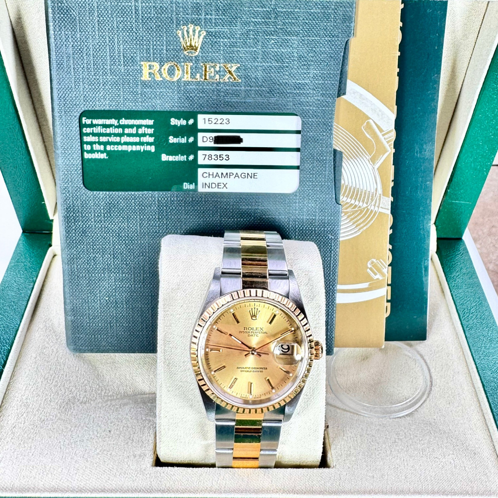 In conclusion, the Rolex 15223 Date with Champagne dial is a timepiece that transcends the boundaries of conventional watchmaking. It reflects a legacy of prestige, intertwining revolutionary technological elements with unparalleled elegance. It's more than just a watch; it's a testament to Rolex's commitment to excellence and a piece of horological history that conveys mastery over the art of watchmaking.
