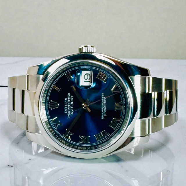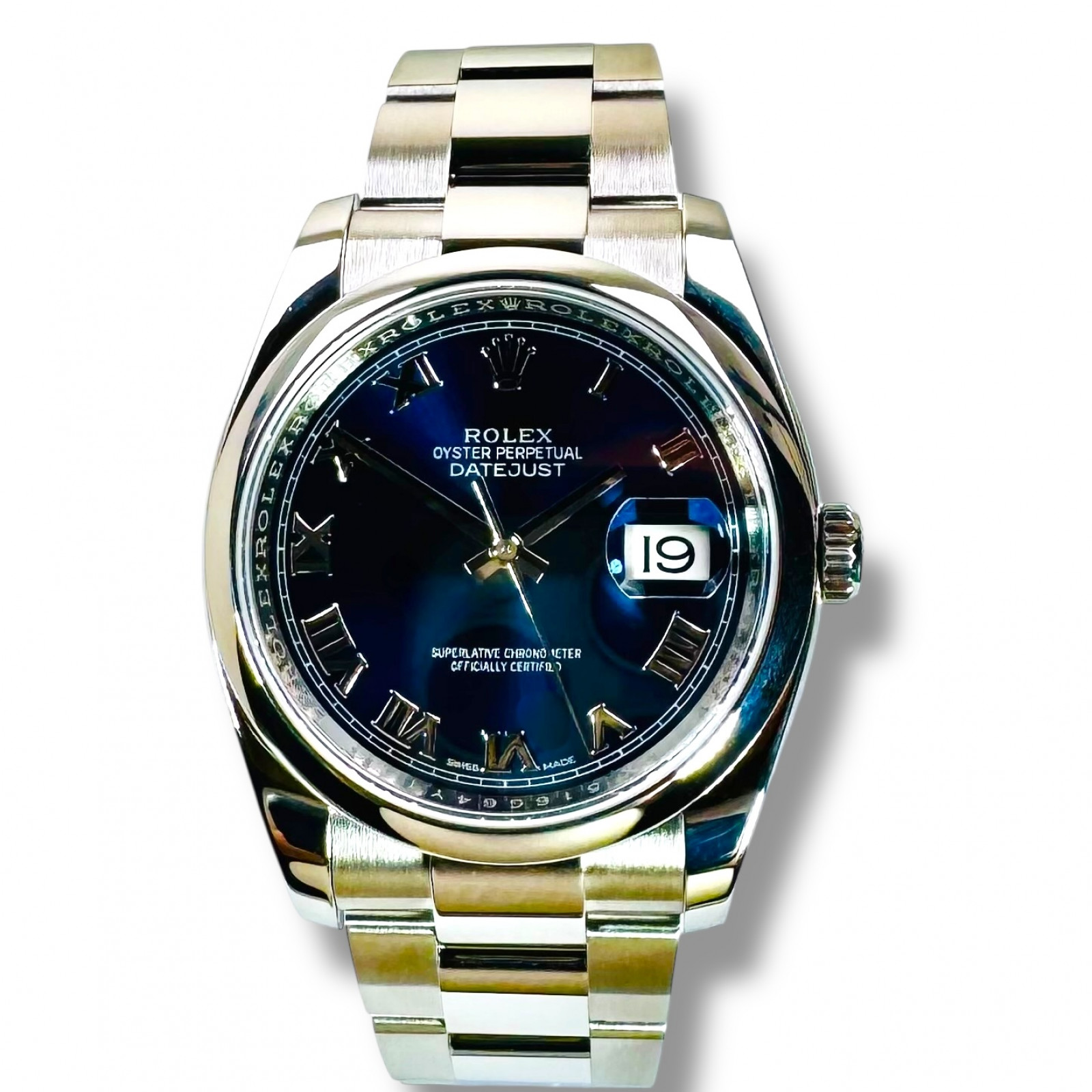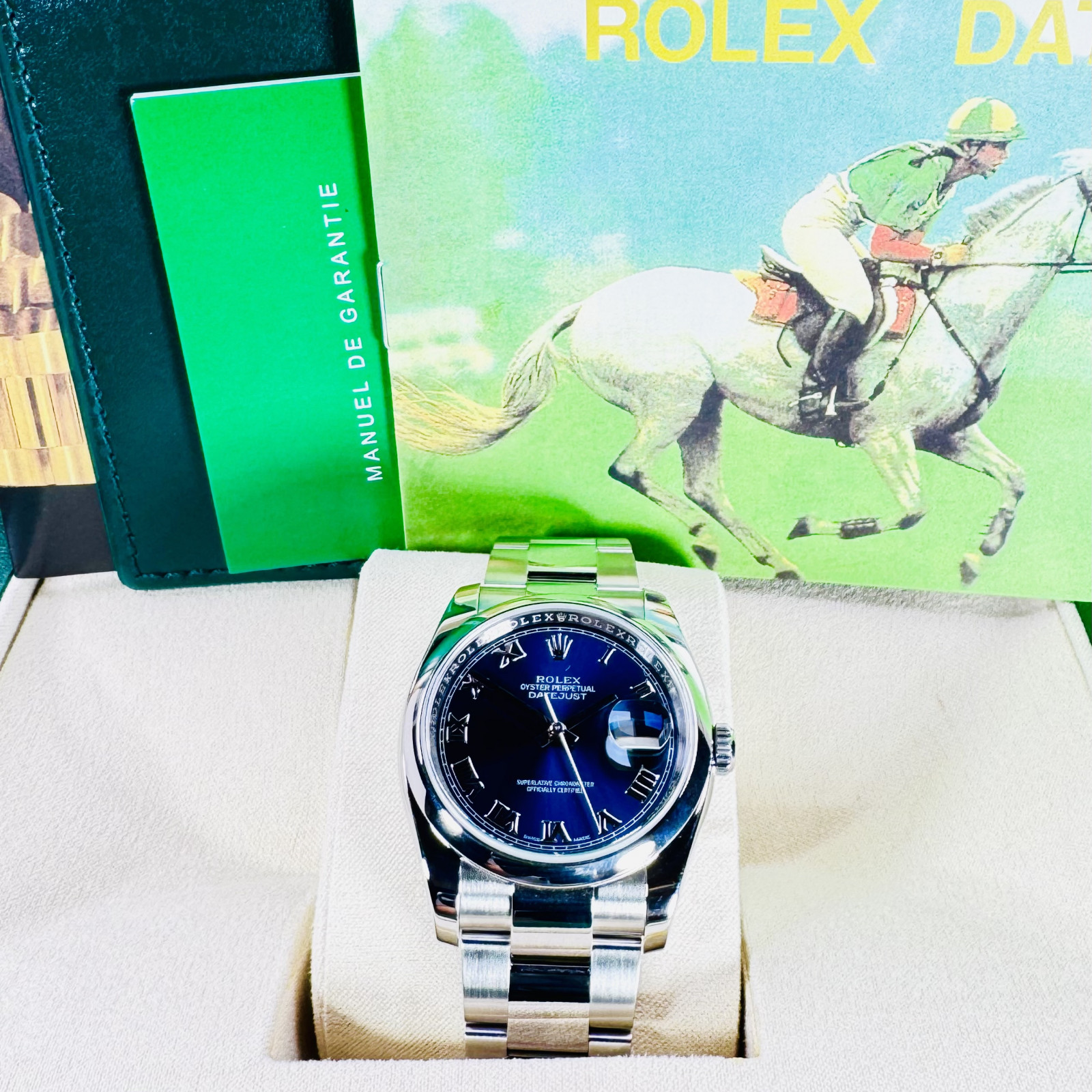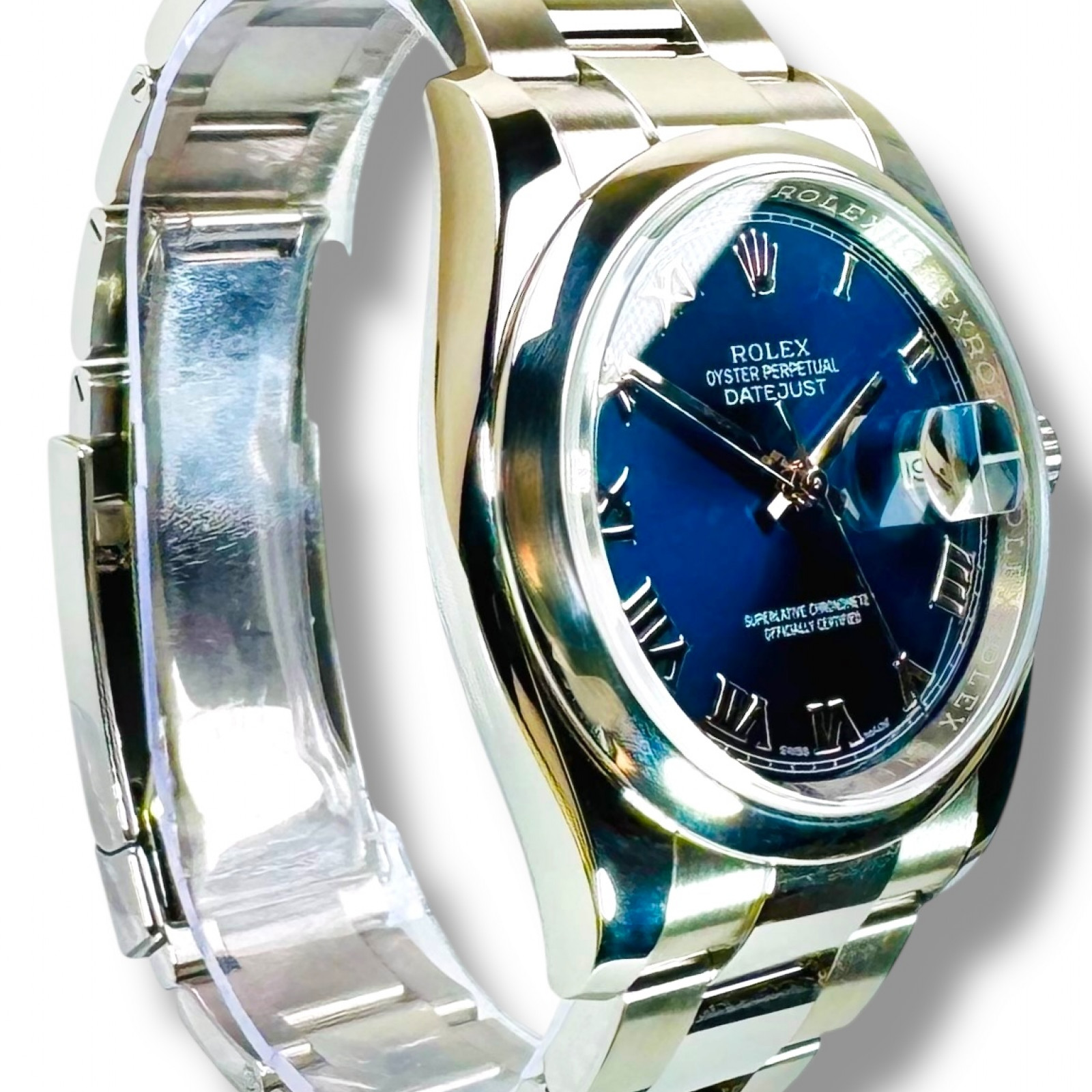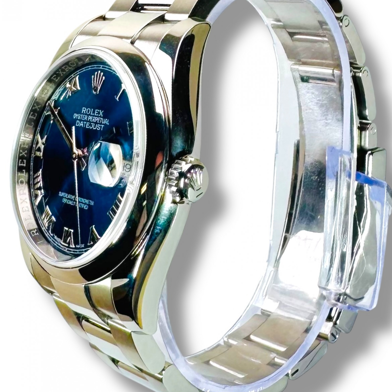 The watch is meticulously detailed with a pristine Blue Roman dial, presenting an extraordinary amalgamation of adaptability and grace. Perfectly crafted in the fashion-forward year of 2012, the Datejust model has remained ahead of the curve, pioneering the trends with its modern design and reliable operations. Its identity is often distinguished by its classic steel-on-oyster style, a testament to Rolex's unwavering commitment to excellence and minute attention to each detail.