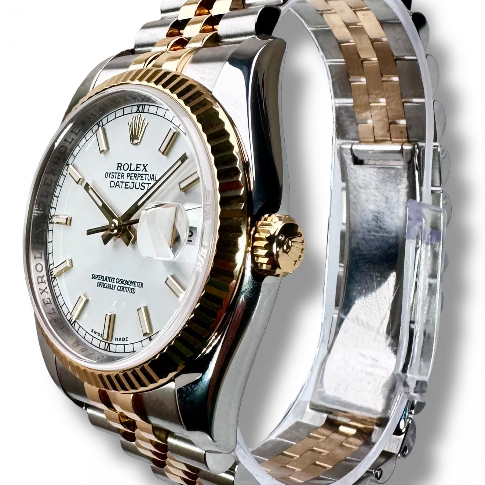 36 mm, Quickset Date, 18kt Yellow Gold & Stainless Steel Bracelet, White Dial, Mint Condition, Box, Booklet, Certificate, Tags