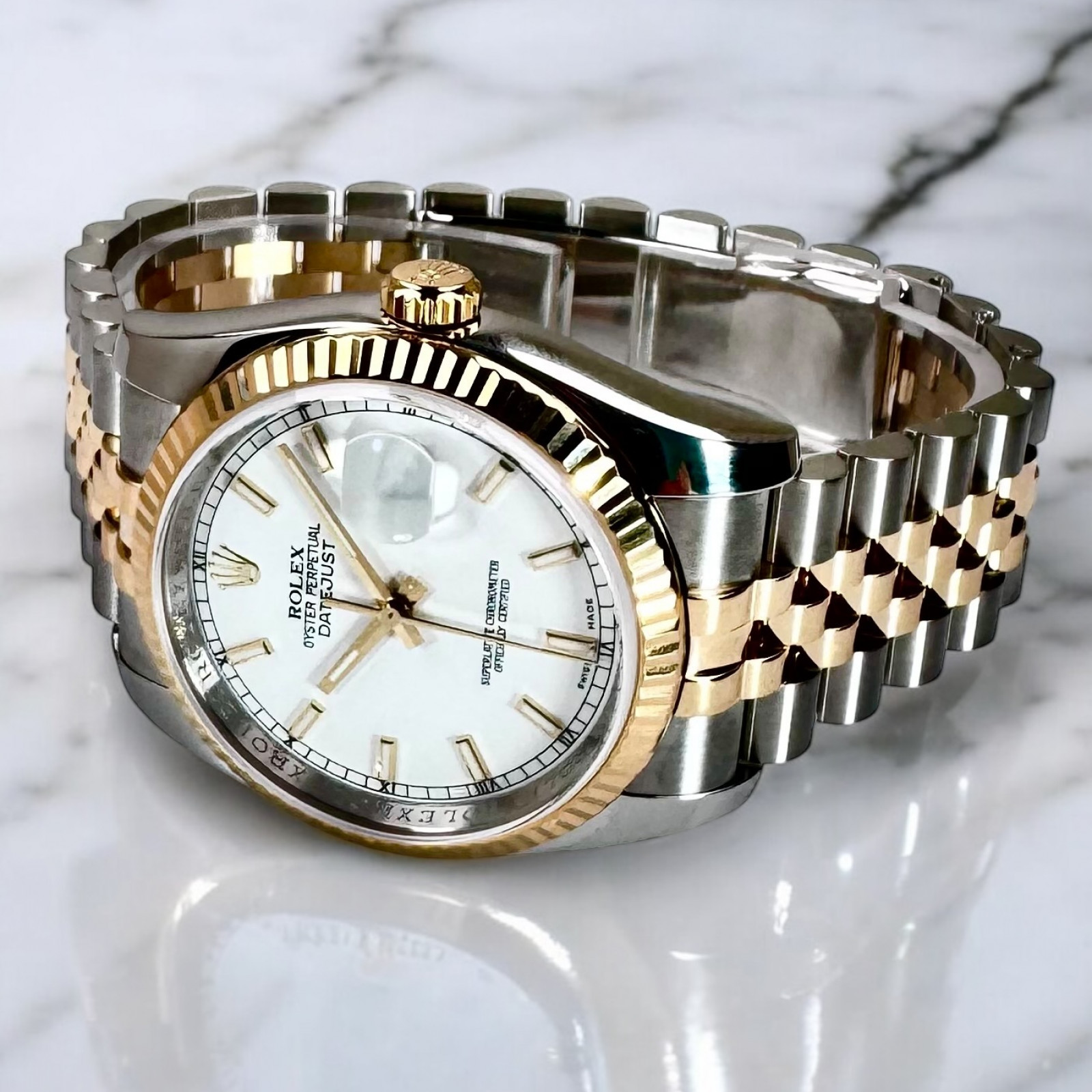 Discover the elegance and precision of Rolex with this Datejust model. This product description is tailored to be reader-friendly and optimized for search engines. Tag words for search engine optimization include Rolex, Datejust, luxury watch, stainless steel, 18k yellow gold, water-resistant, and self-winding mechanical movement.