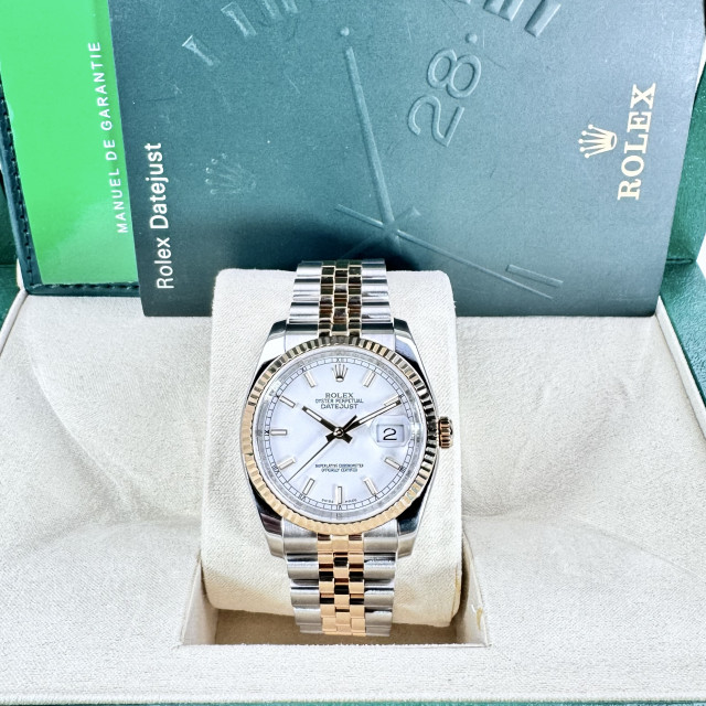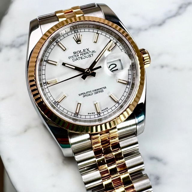 Introducing the stunning Rolex Datejust 116233, a timeless masterpiece that exemplifies luxury and superior craftsmanship. The Rolex Datejust series is renowned for its classic elegance combined with exceptional functionality. The 116233 model showcases a captivating blend of durable stainless steel and 18k yellow gold, offering a visual treat to its admirers.