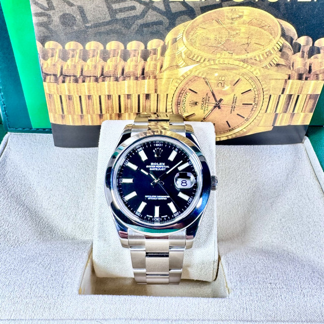 Fast-forward to today, and the expanded Datejust collection unfolds an astonishing variety of sizes to cater to a diverse array of wrist sizes and style preferences. With sizes ranging from a compact, subtly elegant 28mm, ideal for petite wrists or those seeking a minimalistic charm, to a bolder, statement-commanding 41mm, the collection caters to a broad spectrum of potential wearers. The Rolex Datejust 116300 on offer gleams with an assertive 41mm diameter, exuding a confident, domineering presence on the wrist. Material choices span from classic, timeless stainless steel to luxurious two-tone gold, through to extravagant solid gold variants, thus accommodating a wide spectrum of tastes and style personas.
