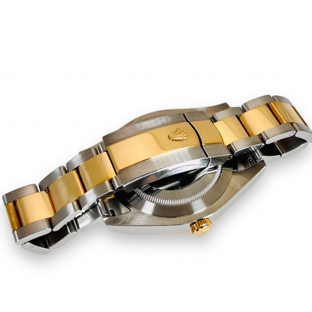 The Rolex Datejust 116333 is attached with a combination of 18 kt gold & stainless steel Oyster bracelet. This stylish yet robust bracelet adds a layer of aesthetic appeal while reinforcing the strength and integrity of the watch.