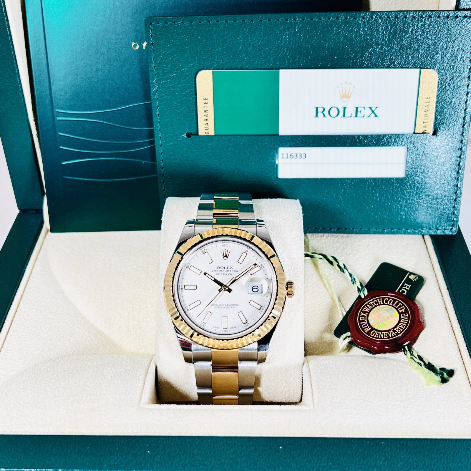 Experience the exquisite blend of style, craftsmanship, and technology with the Rolex Datejust 116333. This timepiece features an elegant Ivory Dial that reflects the ideal combination of tradition and innovation that has become synonymous with the Rolex brand.