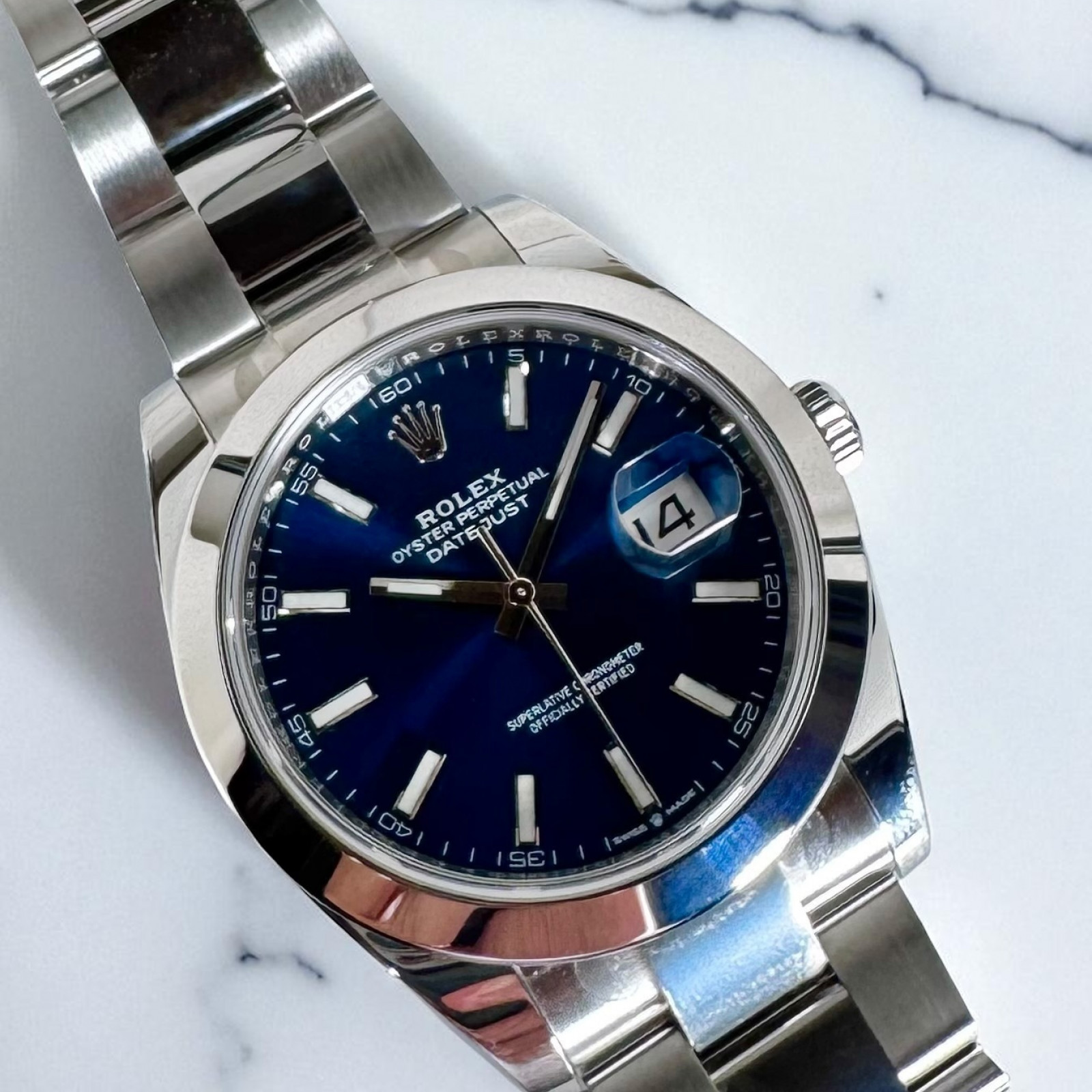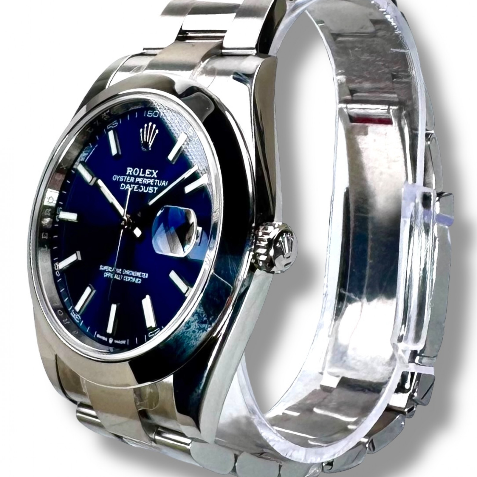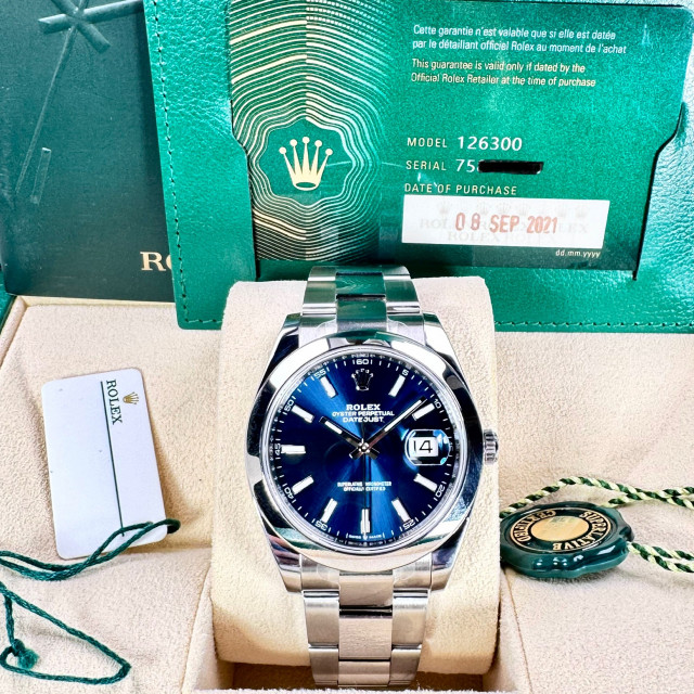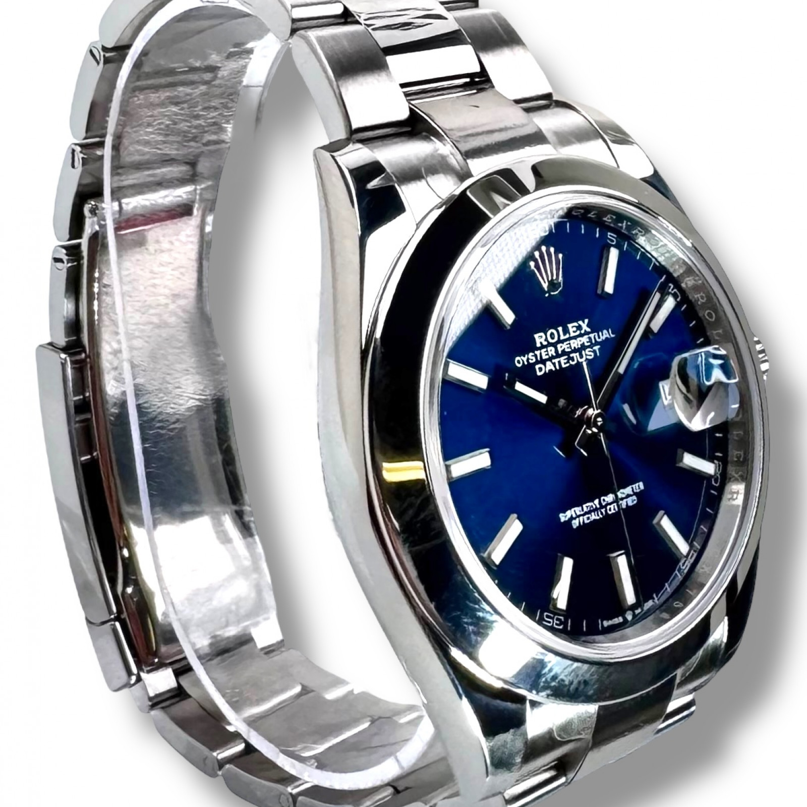 We're excited to proudly unveil the Rolex Datejust 41 126300, a spectacular timepiece celestial in its awe-inspiring majesty that first caught the world's eye as a premier model of 2020. This astonishing work of wristwatch artistry remains in an untouched and pristine condition, a standing testament to the enduring genius of Rolex craftsmanship. The sparkling blue dial is at the heart of this timepiece, capturing and reflecting luminosity in an allure that is utterly irresistible. This magnetic attribute significantly adds to the timepiece's dignity and elegance, solidifying its coveted status within the internationally respected Rolex Datejust lineage. The Rolex Datejust 41 126300 is more than a mere timepiece, it is a remarkable fusion of luxury, practicality, and a deeply rooted tradition of horological craftsmanship, guaranteeing an absolutely mesmerising time-telling experience for its privileged wearer.