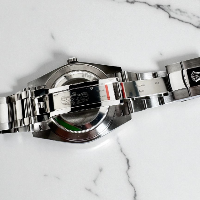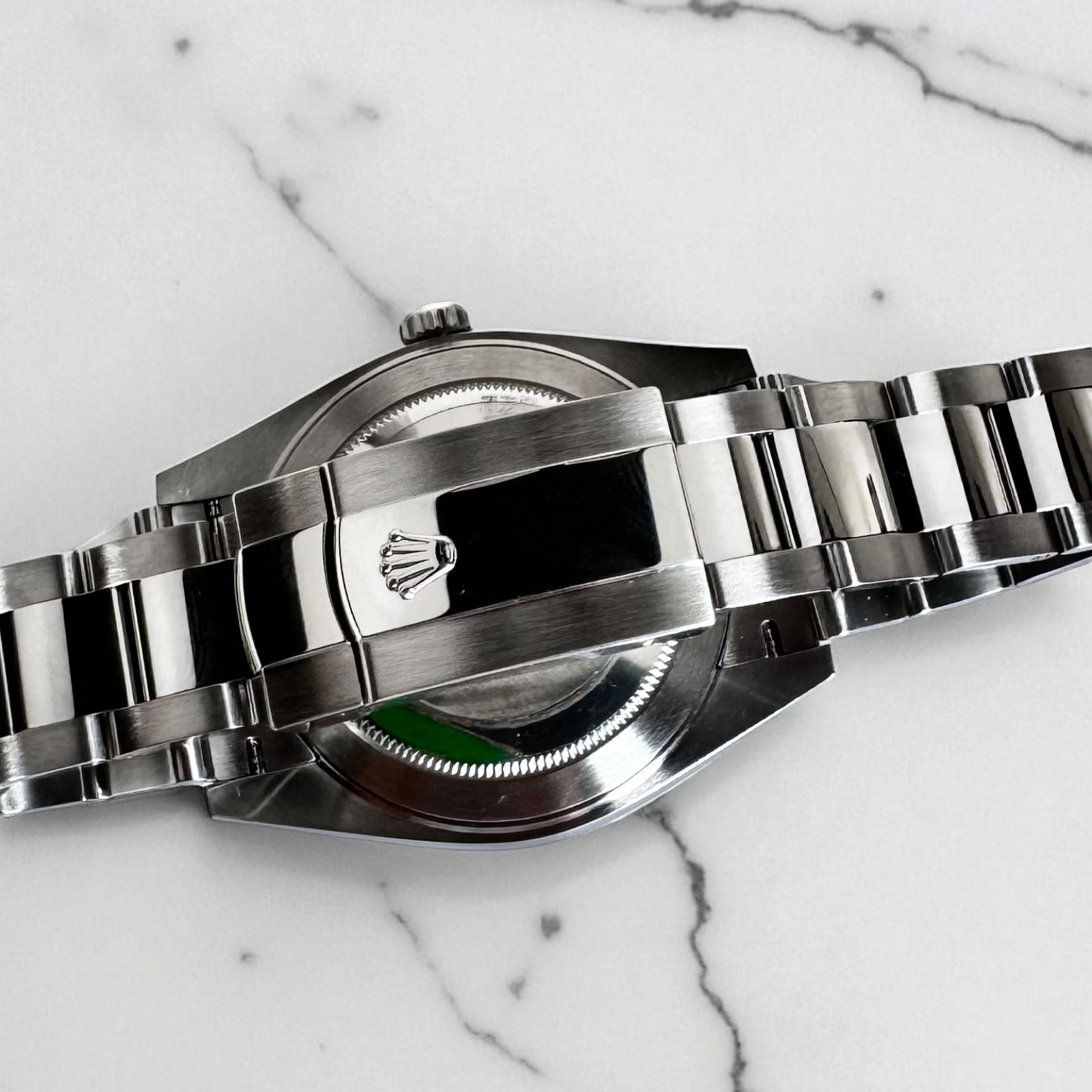 Venturing deeper into the detailed design optimisations that boost the performance and endurance, the legendary Swiss craftsmanship of Rolex takes centre stage. This version now proudly exhibits a Paramagnetic blue Parachrom hairspring, considerably enhancing the watch's accuracy with a glimmer of exclusive charm. To boost its resistance against daily shocks and wear, cutting-edge Paraflex shock absorbers have been integrated seamlessly into the design.
