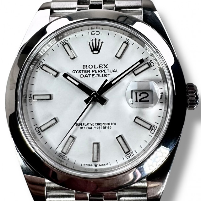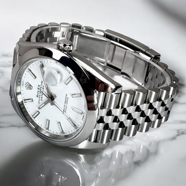 Enter into a realm of unrivaled luxury, paired with exceptional performance, with the Rolex Datejust 41 126300. This breathtaking timepiece stands as an emblem of the master Swiss watchmaker's ceaseless pursuit of finesse and innovation in horology's highest tier. The Rolex Datejust 41 126300 embodies the evolution of the much-loved Datejust collection, captivating spectators with a refined white dial that emanates an unmatched air of chic sophistry.