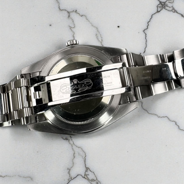 A detour from convention is taken in the form of the robust Oyster stainless steel bracelet. This represents an impressive interplay of resilience, elegance, and strength. It not only enhances the wristwatch's durability and indomitable appeal but equally enhances the wearer's comfort and style, making it a truly elegant extension of their personality.