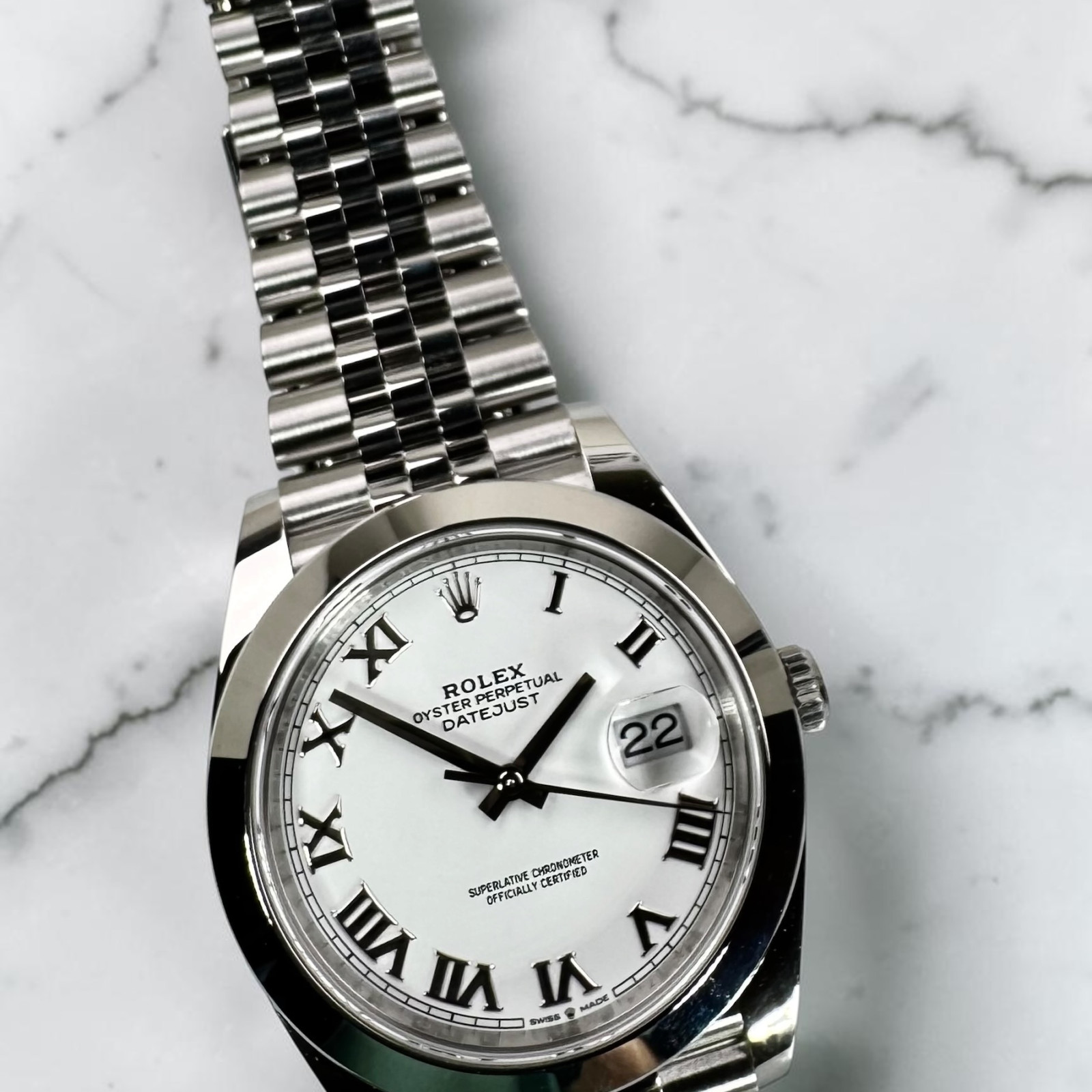 The Rolex Datejust 41 126300 isn't just a mere timepiece—it has earned the distinguished title of a COSC-certified chronometer, an honor strictly reserved for the most eminent of watches. These extraordinary timepieces endure extensive evaluations executed by Controle Officiel Suisse des Chronometres (COSC), an autonomous branch of the Swiss Federation of Swiss Watch Industry's counterfeiting defense organization. Spanning numerous days, these watch pieces are examined under a variety of conditions and temperatures by COSC experts—meticulous assessments that certify the precision and legitimacy of every Rolex Datejust 41 126300.