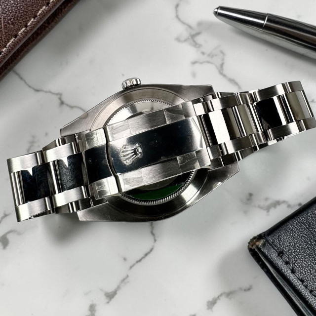 Journeying deeper into the evolution of the Rolex 126300 exposes its beating heart—the enchanting Cal.3235 movement. This horological wonder ensures enhanced precision, distilling Rolex’s extensive expertise into a tangible symbol of their mechanical prowess. To flawlessly compliment this precisely engineered core, Rolex's signature Jubilee bracelet—swiftly and deftly wrought of the most refined stainless steel—infuses a breathtaking visual appeal while optimising comfort and durability for an extended lifespan.