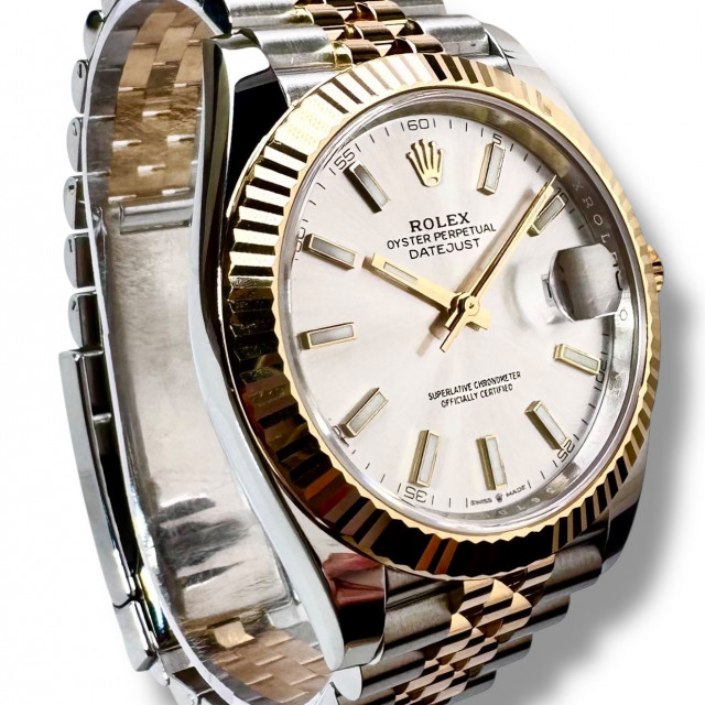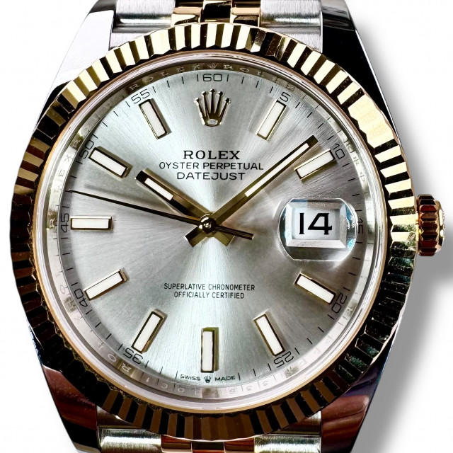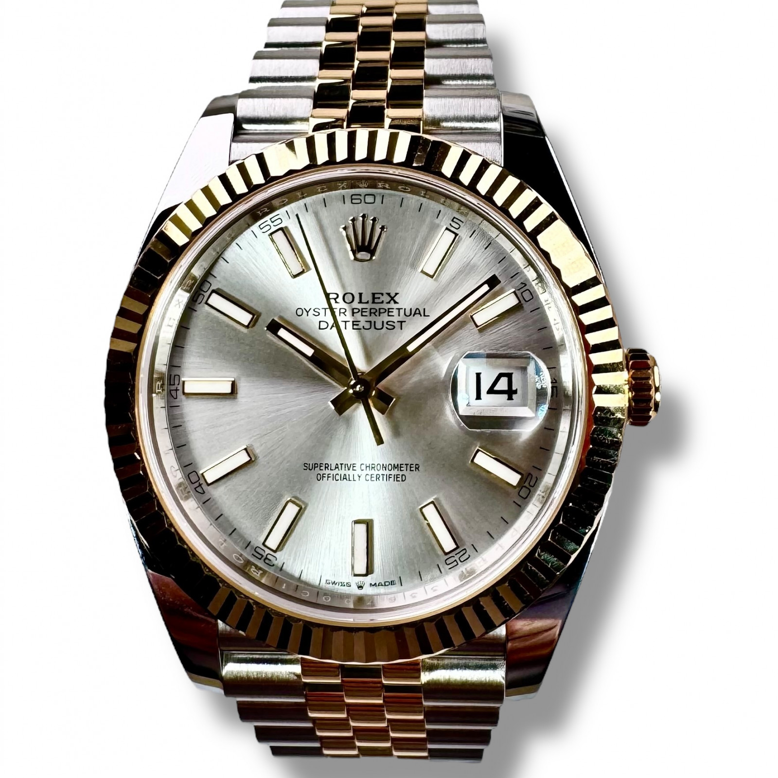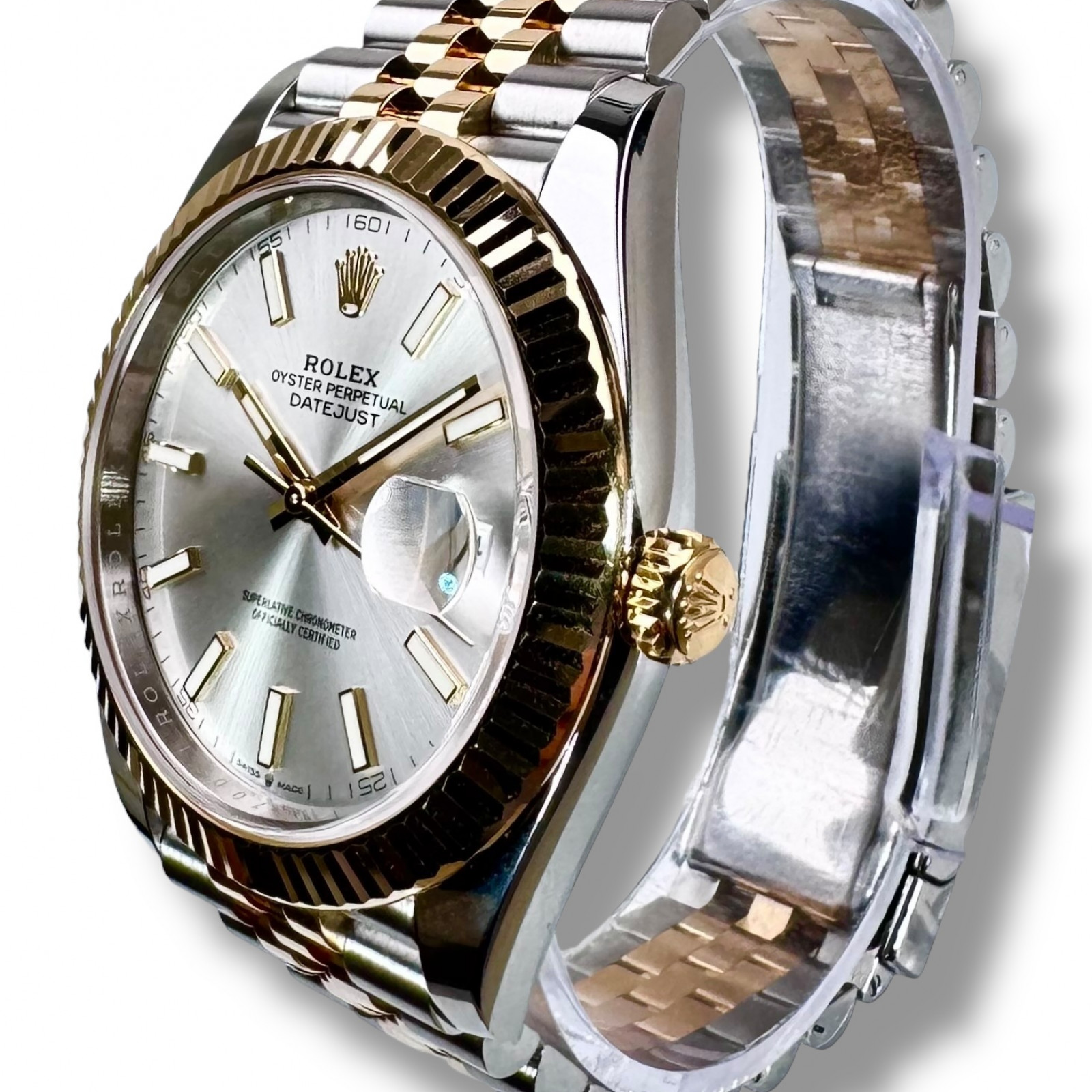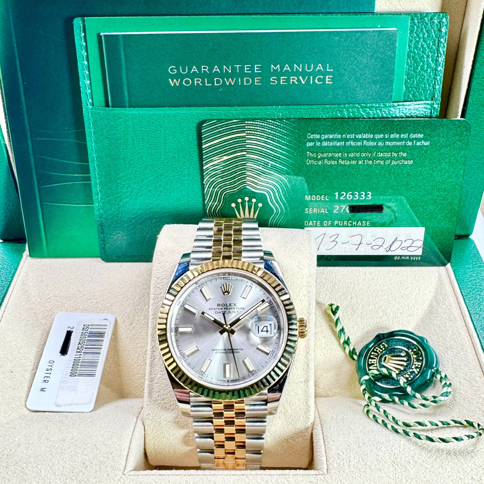 Introducing to the global stage, the highly revered and internationally acclaimed Rolex Datejust watch, unworn 2022 production. This masterwork of horology perfectly encapsulates elegance and exactitude in its design. The heart of this luxurious timepiece, a sleek Silver dial, is nestled within a painstakingly engineered Oystersteel casing. The captivating dial is rich with intricate details, all skillfully contained in a thoughtfully proportioned 41mm diameter case. This Rolex subtly yet absolutely radiates the brand's archetypal grandeur, solidifying its position as a testament to the brand's unwavering dedication to superior design and distinguished craftsmanship.