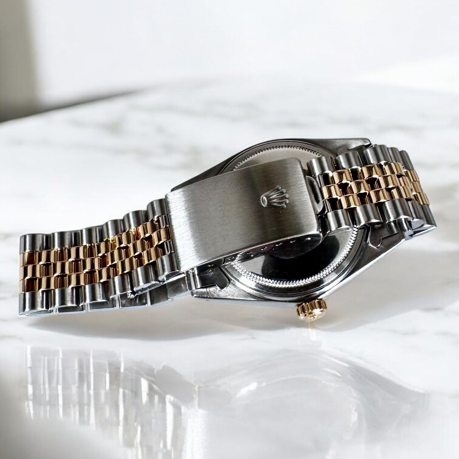 The Rolex 16013 gently coils around your wrist, courtesy of the robust bracelet Model 62523. Acclaimed for its stable resilience, this bracelet delivers unprecedented comfort without compromising on its gleaming polished appearance, enduring the test of time – quite literally.