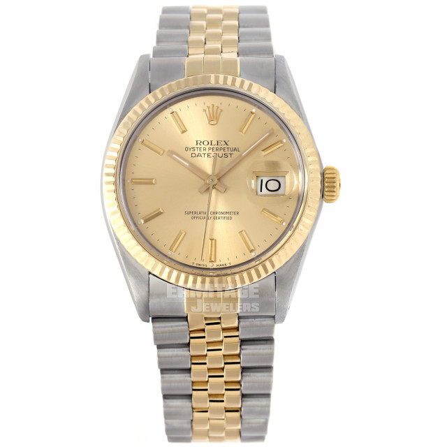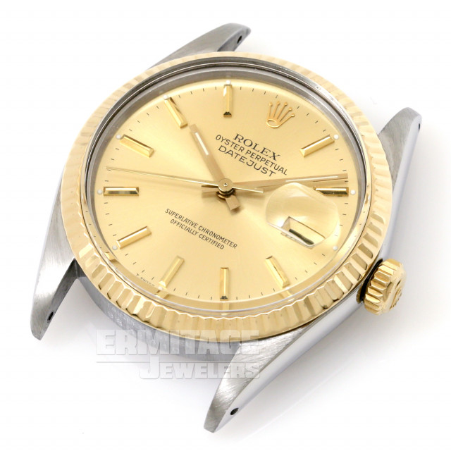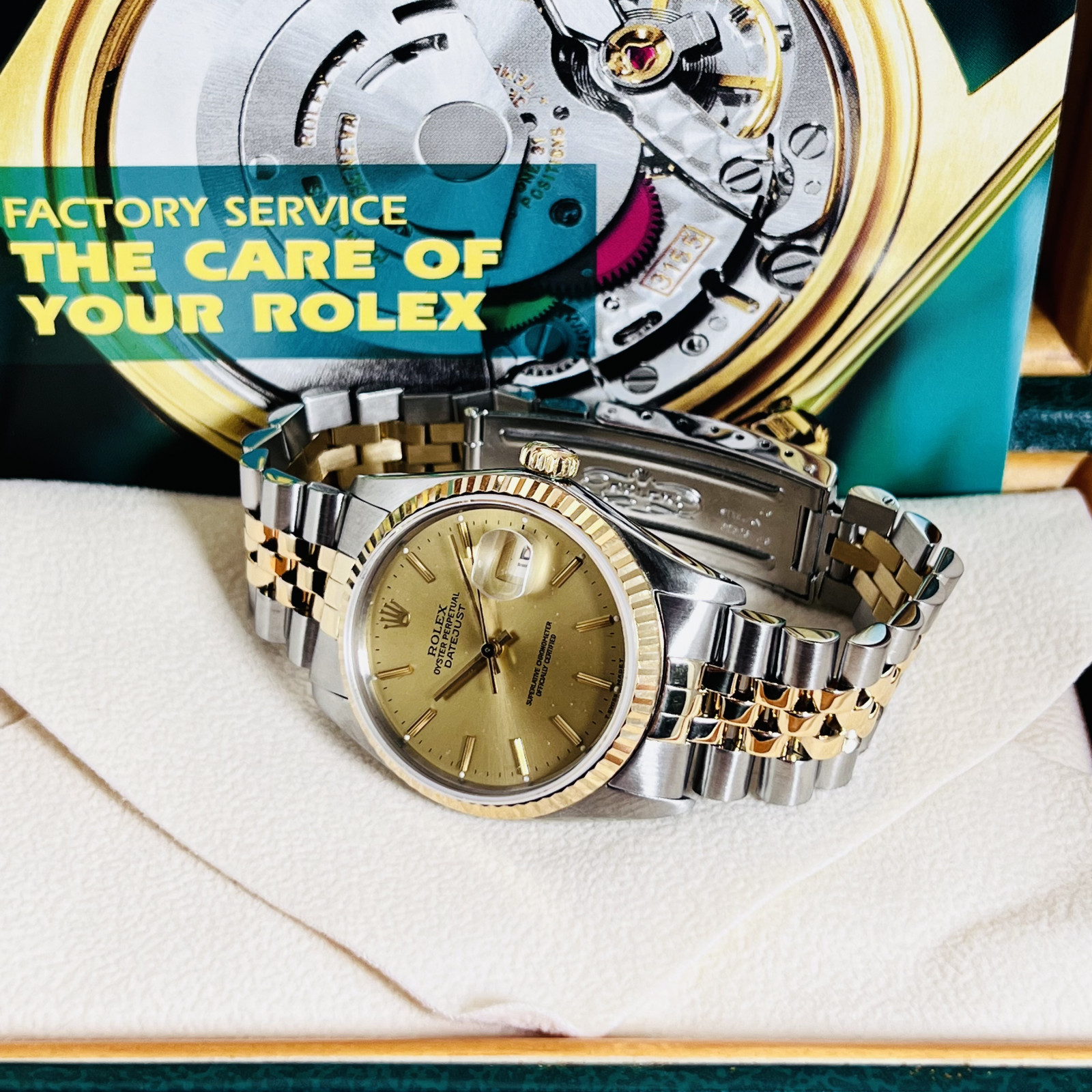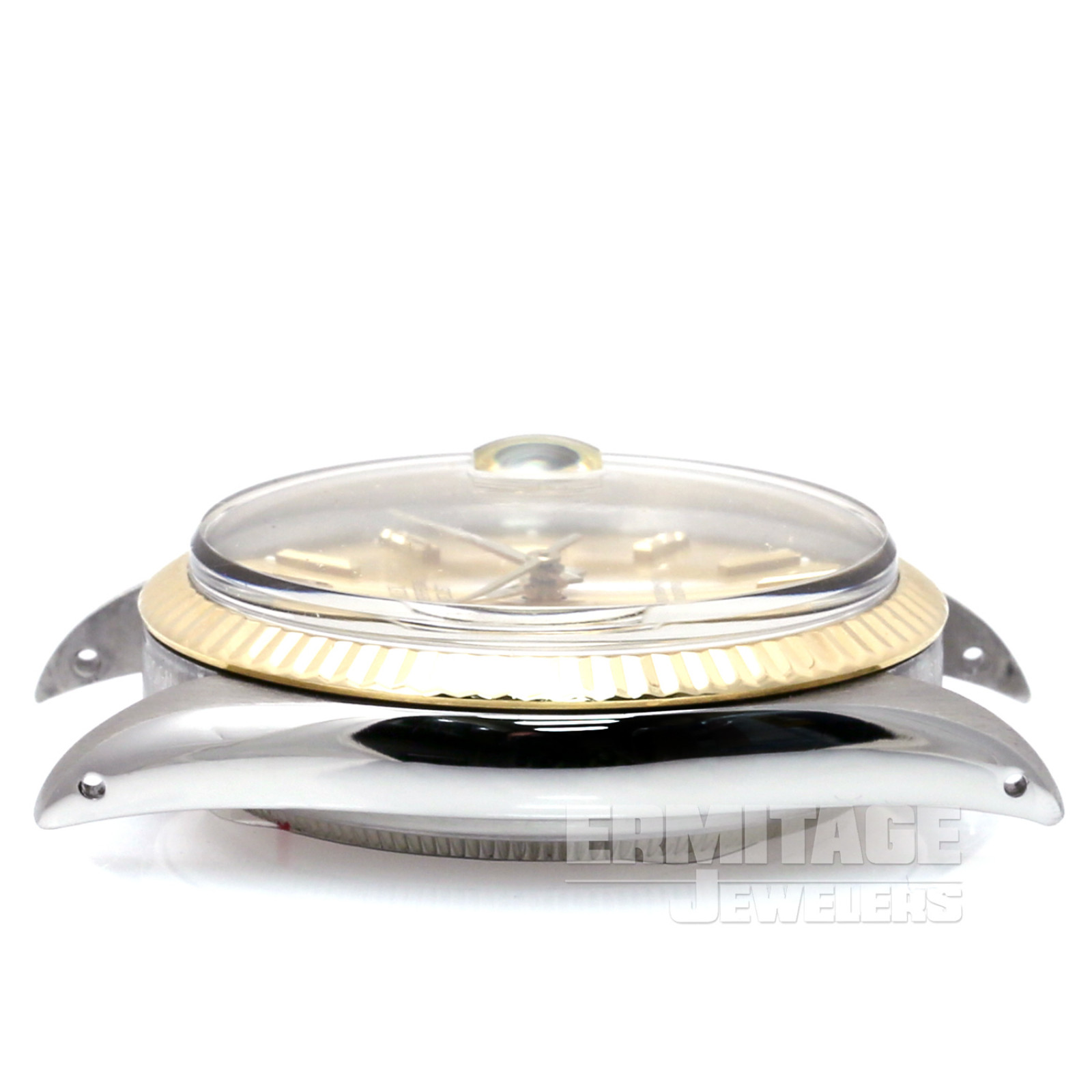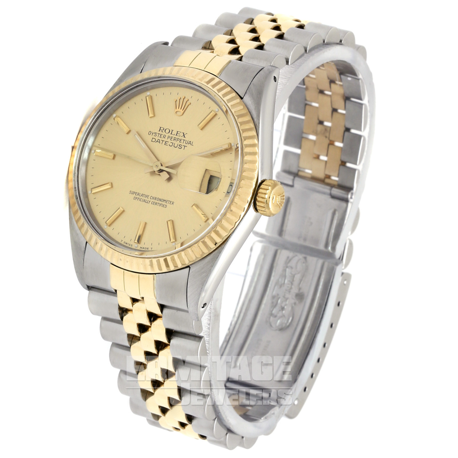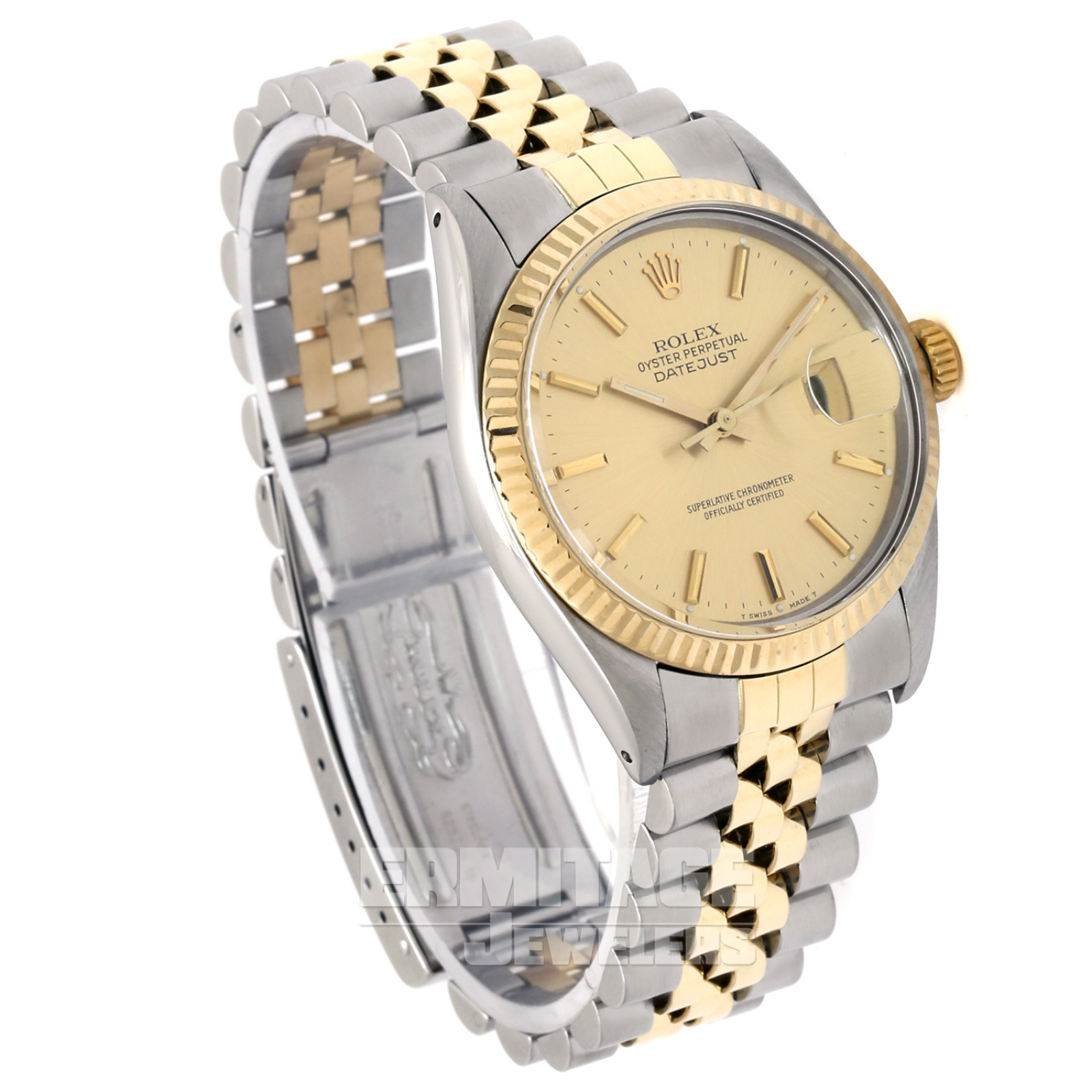Rolex 16013 with Champagne Dial. Rolex introduced first Datejust watch in 1945 to commemorate company 40th anniversary. It was first watch with automatic change of the date. This watch is in excellent condition. It is furnished with champagne dial, in my opinion most beautiful of all Rolex dials. Stainless steel oyster case housing formidable movement Caliber 3035. Watch is sporting most durable bracelet Model 62523 Water resistant up to a 330 ft. Precision +5/-7 Sec. Date function quick set.