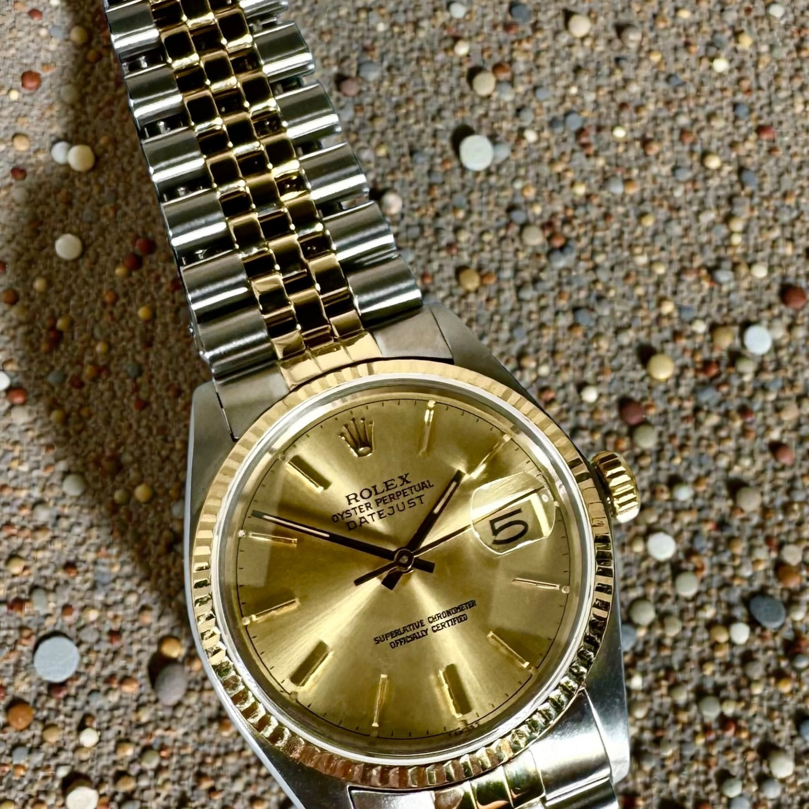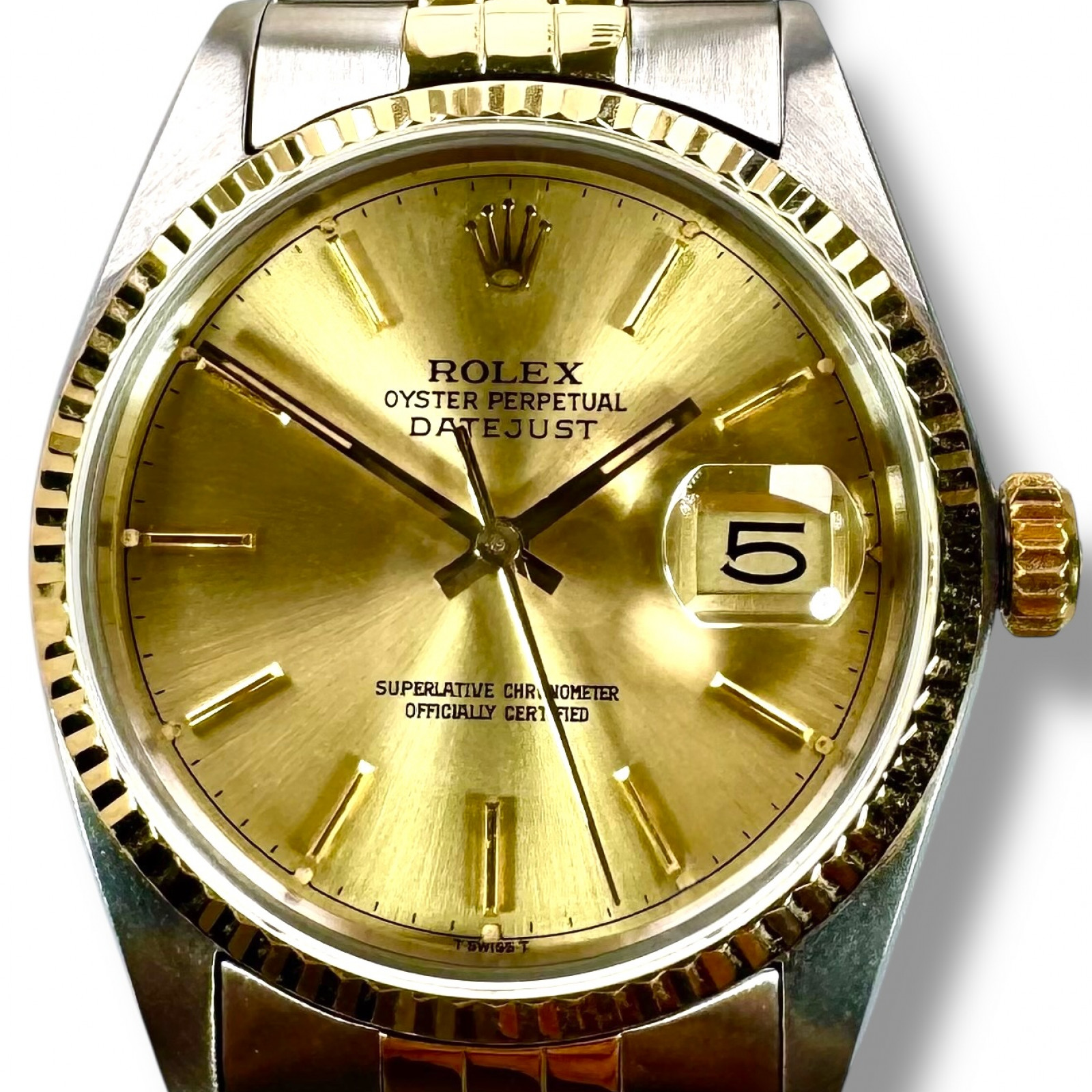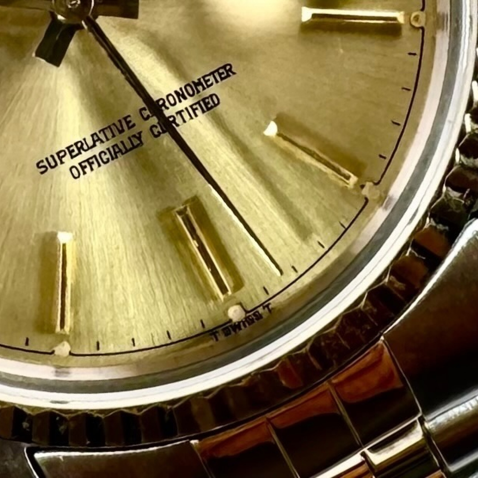 Embodying a timeless classic's spirit, the Rolex 16013 is preserved in excellent condition, its essence unspoiled by the passage of time. Its most remarkable element, however, is the tastefully embellished champagne dial. Indubitably top amongst all other Rolex dials, the luxuriant champagne tint projects an unrivaled elegance and sophistication that titillates the onlooker’s senses, instantly capturing and captivating their gaze.