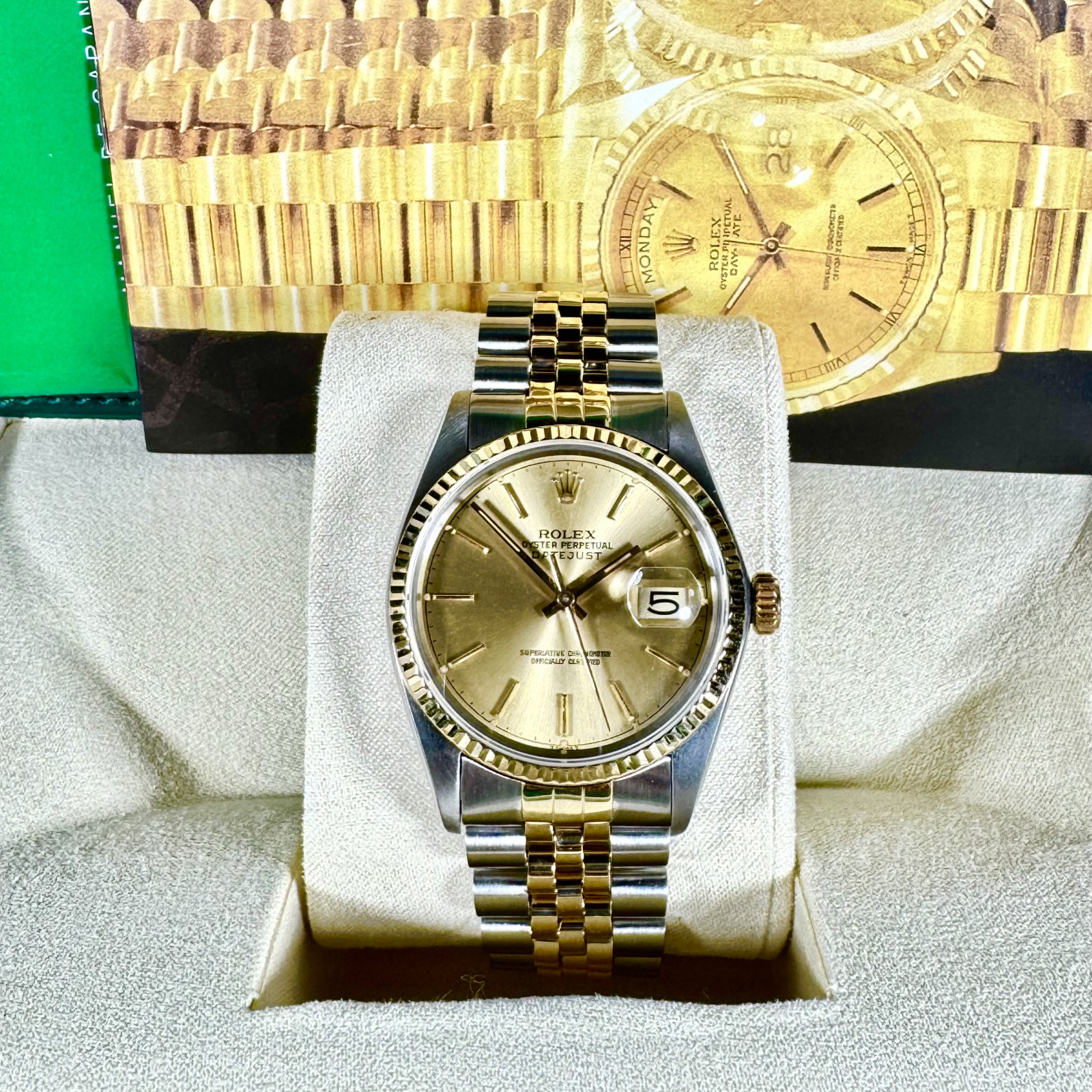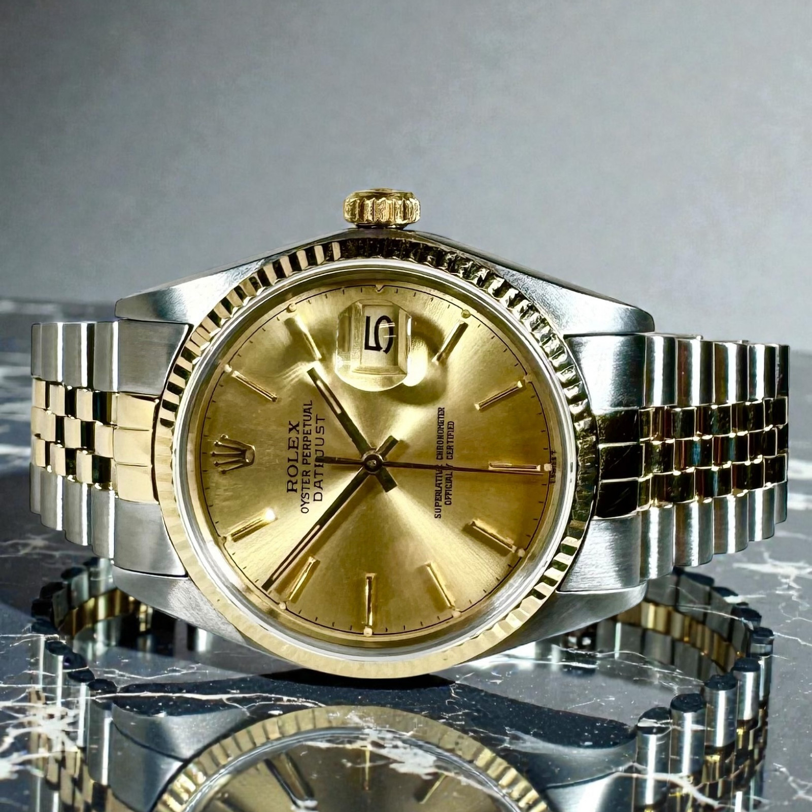 The watch's conception was a groundbreaking moment in time, for the then newly birthed Datejust series not only marked another year of Rolex's relentless pursuit of innovation but also new horizons in aesthetic and functional design. Distinctly futuristic in style, the Rolex 16013 garnered acclaim for its unique attribute as the first wristwatch to feature an automatic date change function, pioneering a new era of convenience and mechanical marvel for watch aficionados worldwide.