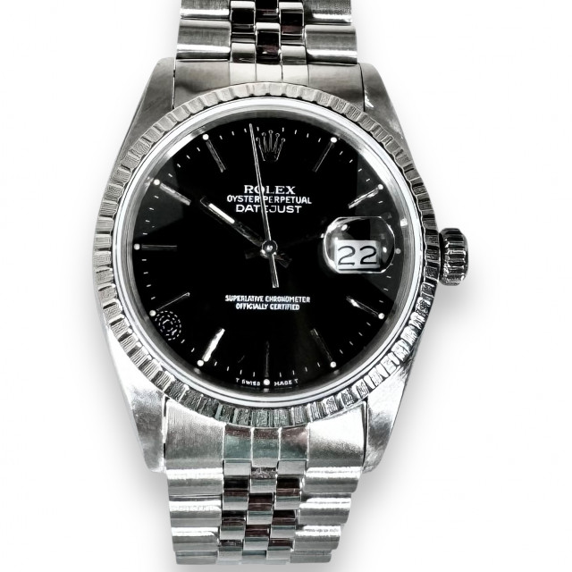 Allow us to unveil the prestigious Rolex 16030 — a masterfully crafted stainless steel timepiece, bedecked with an elegant black dial. A relic of horological history, this supreme incarnation was first brought to life in 1945 by Rolex, the undisputed forerunner in the watch-making industry. Launched to commemorate the powerhouse company's 40th anniversary, it stands as a grand salute to the brand's unparalleled legacy and sovereignty in the realm of sophisticated wristwatches.