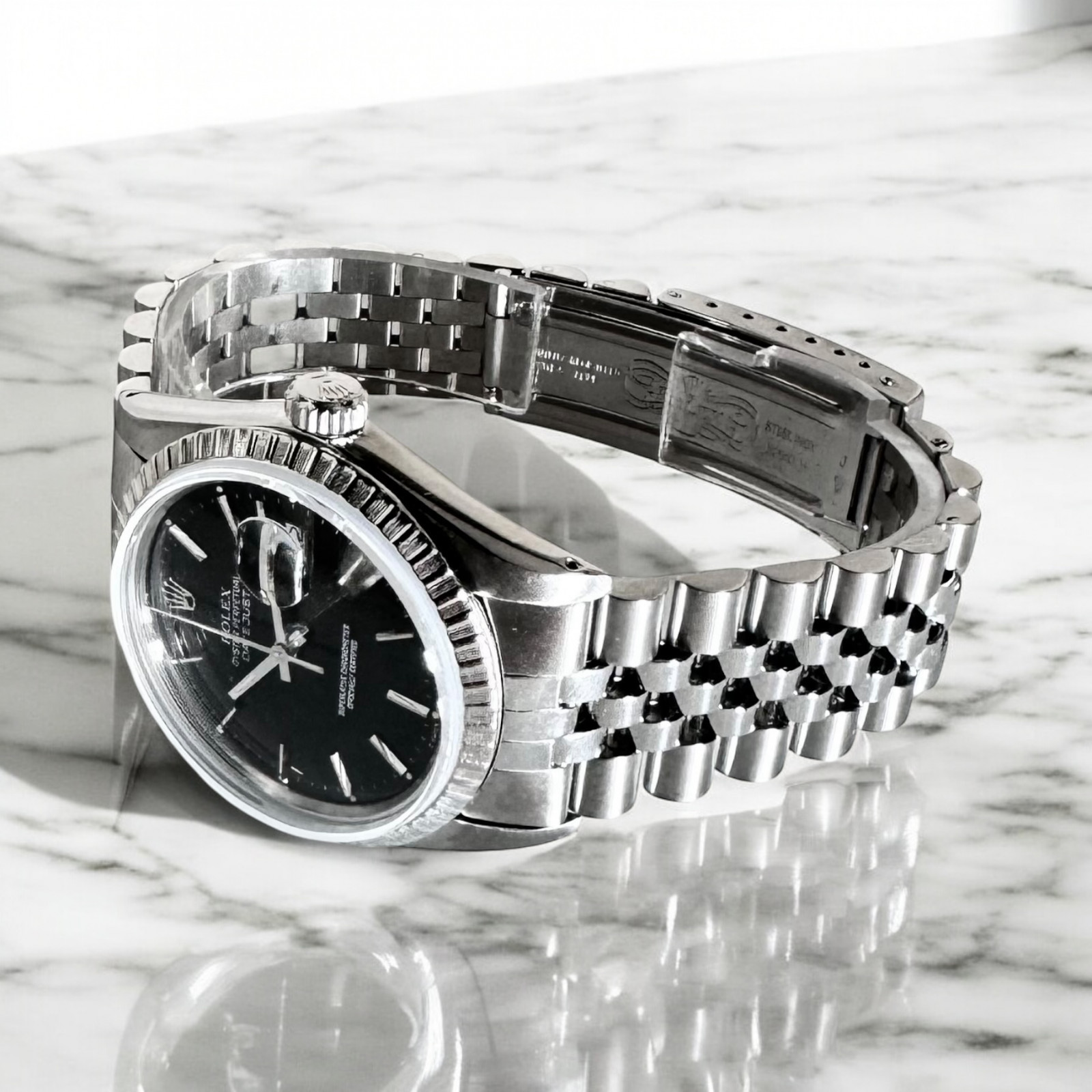 Adding further to the bygone era sophistication effortlessly radiating from the timepiece, the Rolex 16030 is styled with the harmonious fusion of the model 62510 Jubilee bracelet. This painstakingly crafted wristband amplifies the watch’s charm multifold, ensuring robustness while infusing an extra dash of opulence to fulfil the quintessential Rolex experience.