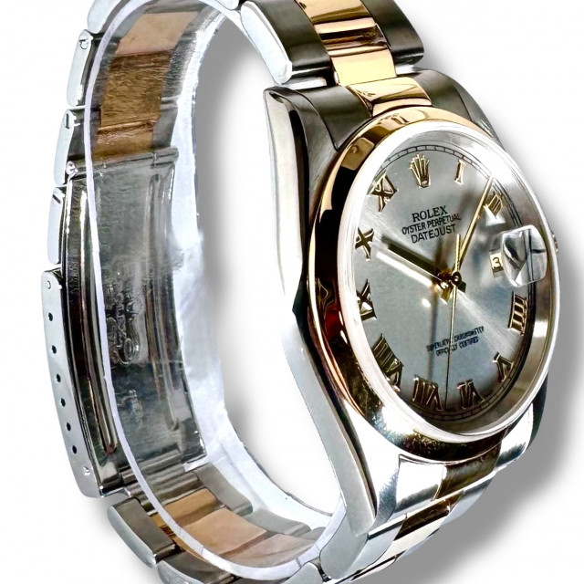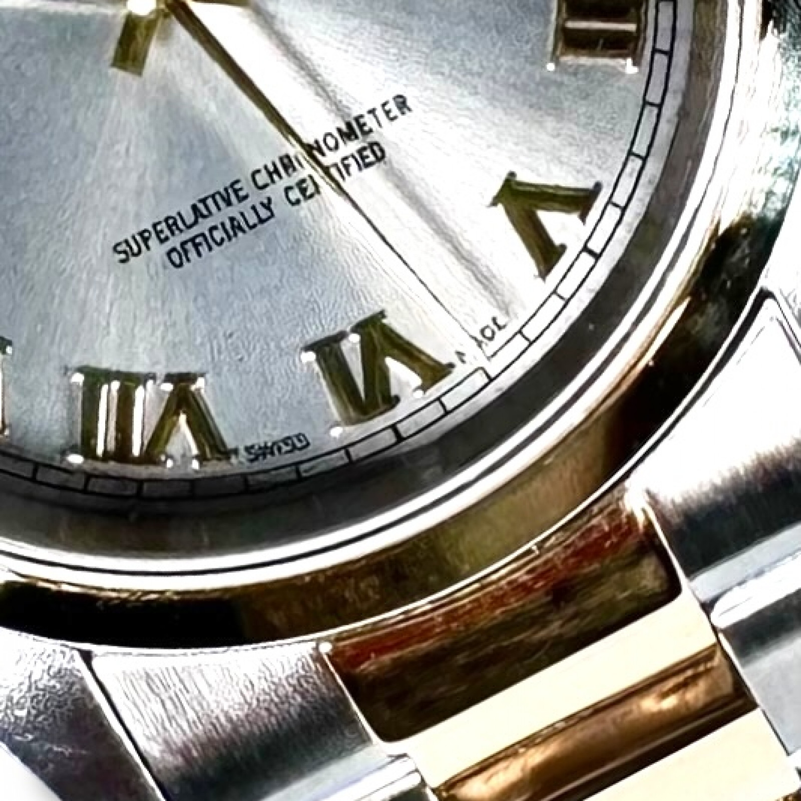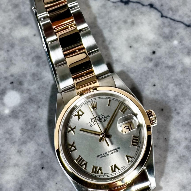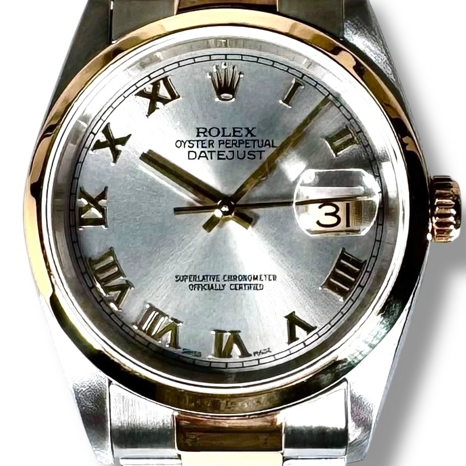 At the heart of the Rolex 16203 Datejust beats a pristine Rhodium dial that flaunts classic Roman numerals. In simple terms, it pays rich tribute to the timeless aesthetics of traditional watchmaking, infusing both modern and vintage design elements into a seamless blend that is absolutely stunning to behold.