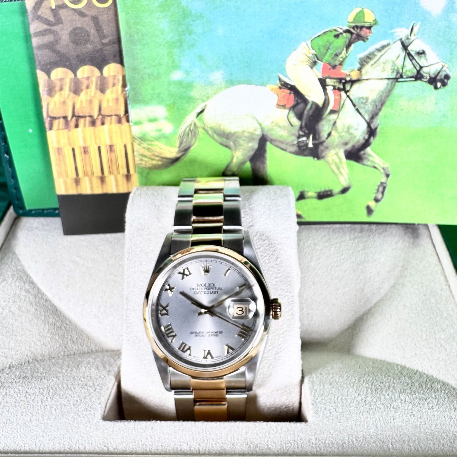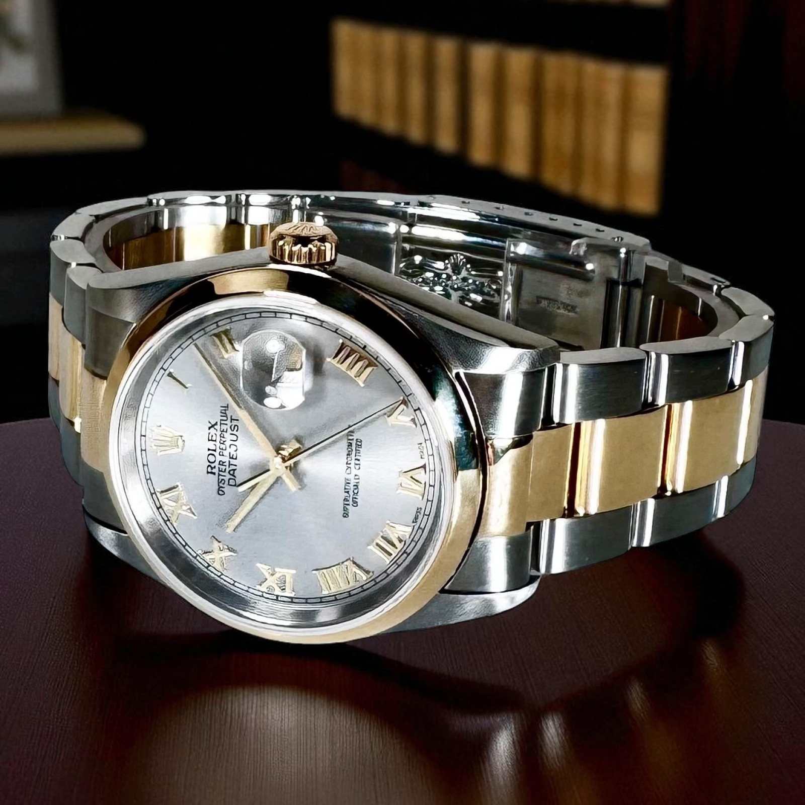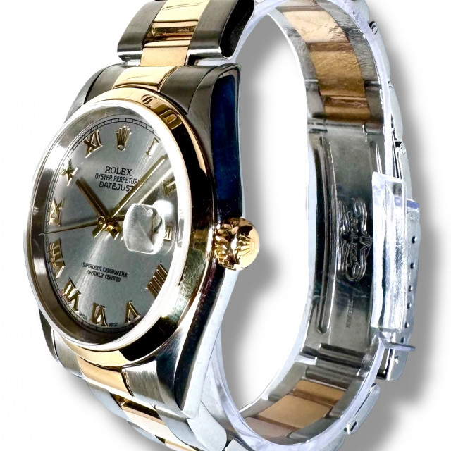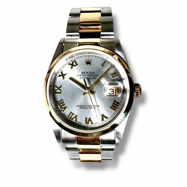 At the heart of the Rolex 16203 Datejust beats a pristine Rhodium dial that flaunts classic Roman numerals. In simple terms, it pays rich tribute to the timeless aesthetics of traditional watchmaking, infusing both modern and vintage design elements into a seamless blend that is absolutely stunning to behold.