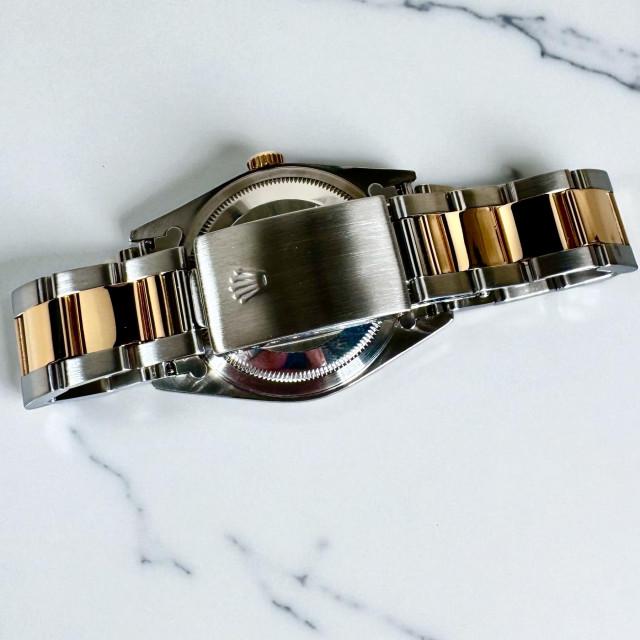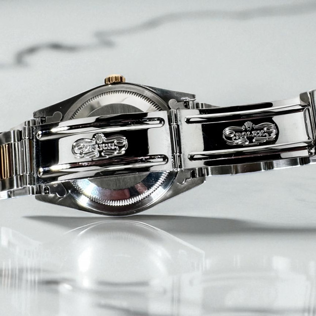 Further enhancing the Rolex 16203 Datejust's aesthetic appeal is the intricately crafted Stainless Steel and 18 KT Gold bracelet 62523. It offers unrivaled comfort and robustness while adding an extra touch of lavish elegance to the watch. This careful blend of style and functionality gives the watch an aura of noble grandeur.