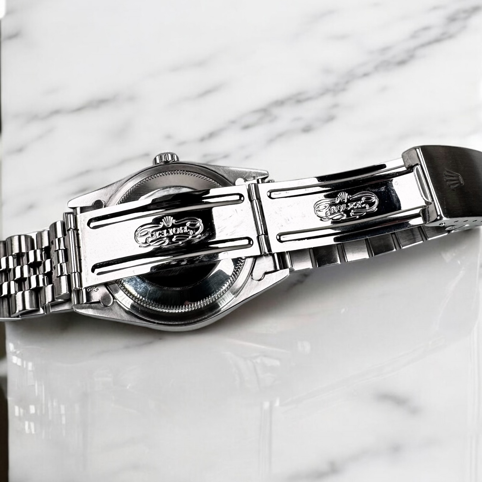 This Rolex Datejust model 16220 stands out distinctly through its engaging, unassuming size that packs a palpable punch. Featuring a 36mm Oyster case, it manages to create a noticeable, yet subtle aura on the wearer's wrist, sealing its place as a universally attractive choice for men and women who don't compromise on their fashion-forward persona.