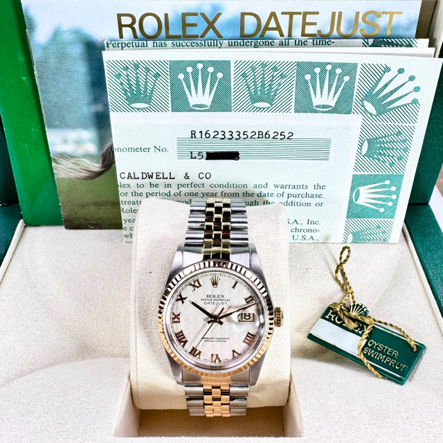 Holding a Chronometer Certification, the Rolex 16233 Datejust has passed an exhaustive battery of tests overseen by a neutral body. These tests, conducted over several days, assess the watch's performance in different positions and temperatures, ensuring the highest level of precision and accuracy.