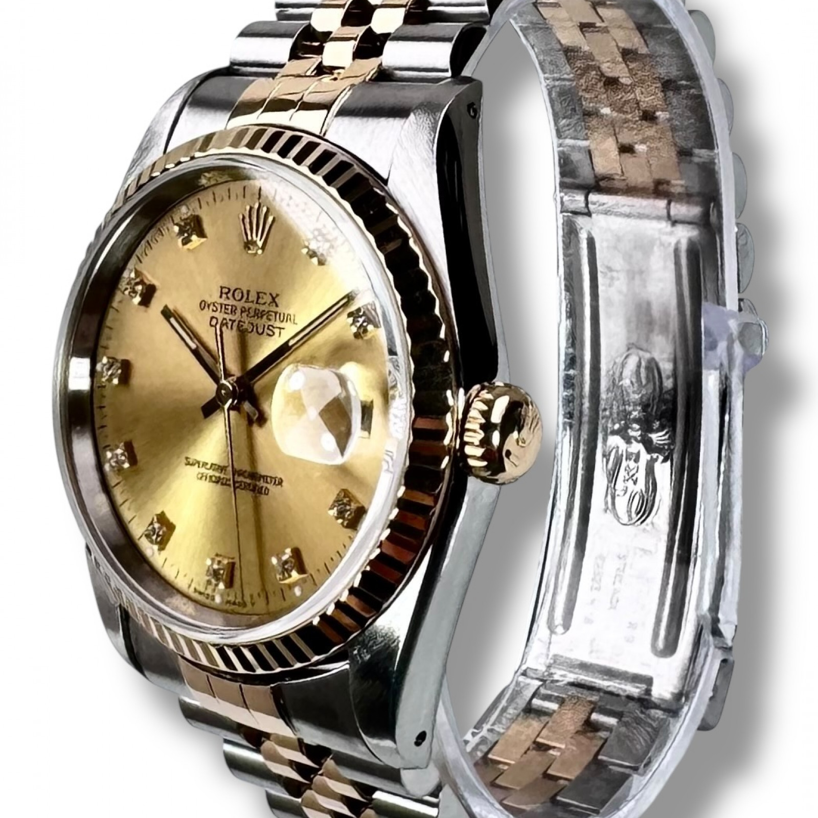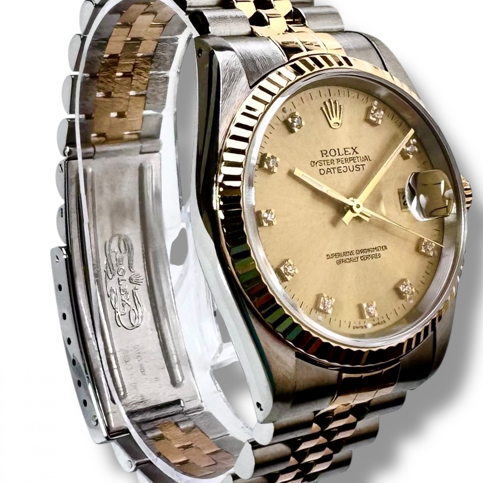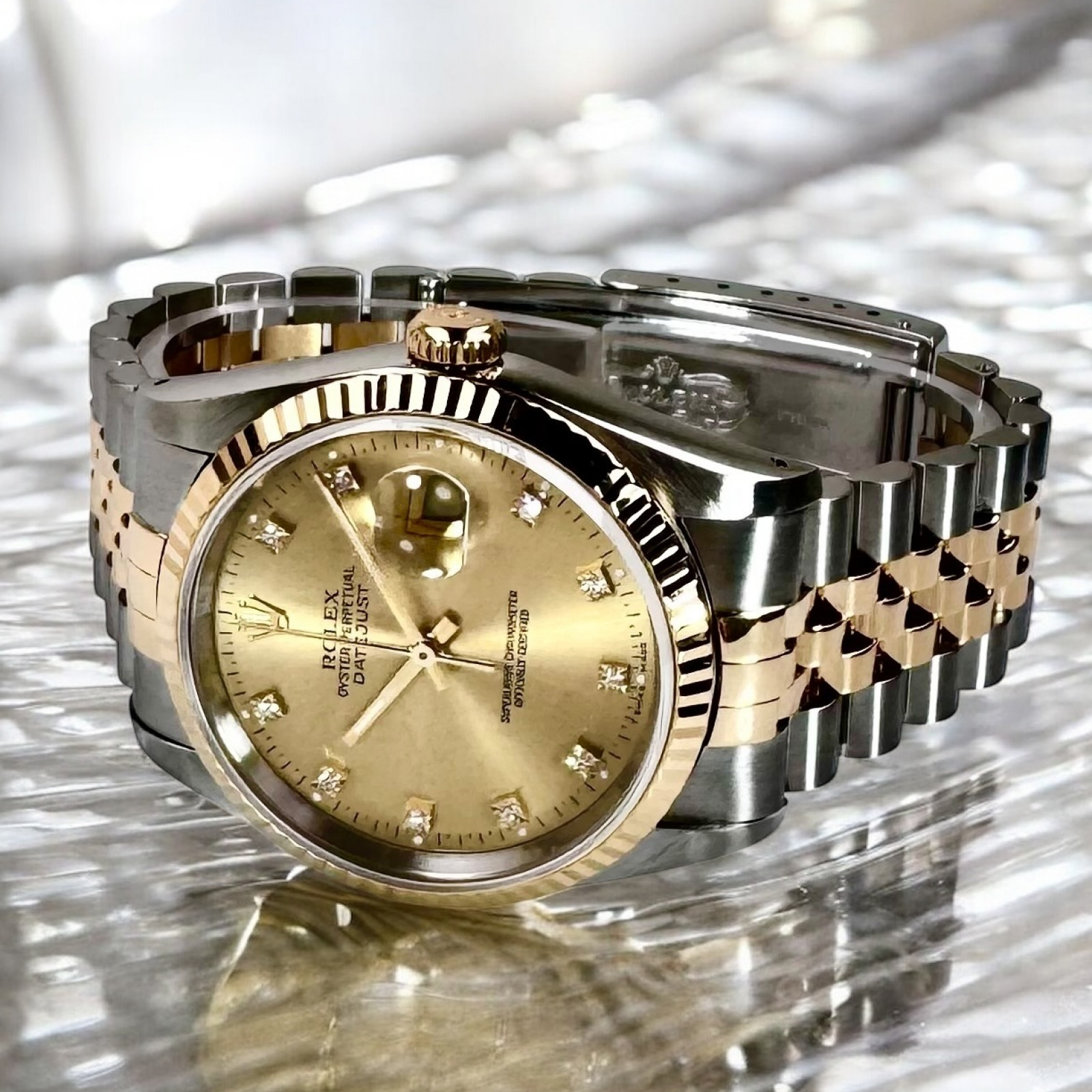 The Rolex 16233 Datejust with the Champagne Diamond Dial epitomizes the perfect melding of Rolex’s legendary quality with revolutionary technology, aesthetic allure, and historical significance. Owning this watch is more than just adding to your fashion accessories; it provides you with the remarkable opportunity of cherishing a masterpiece of timeless horological brilliance, thereby enhancing the value and elegance of your personal collection.