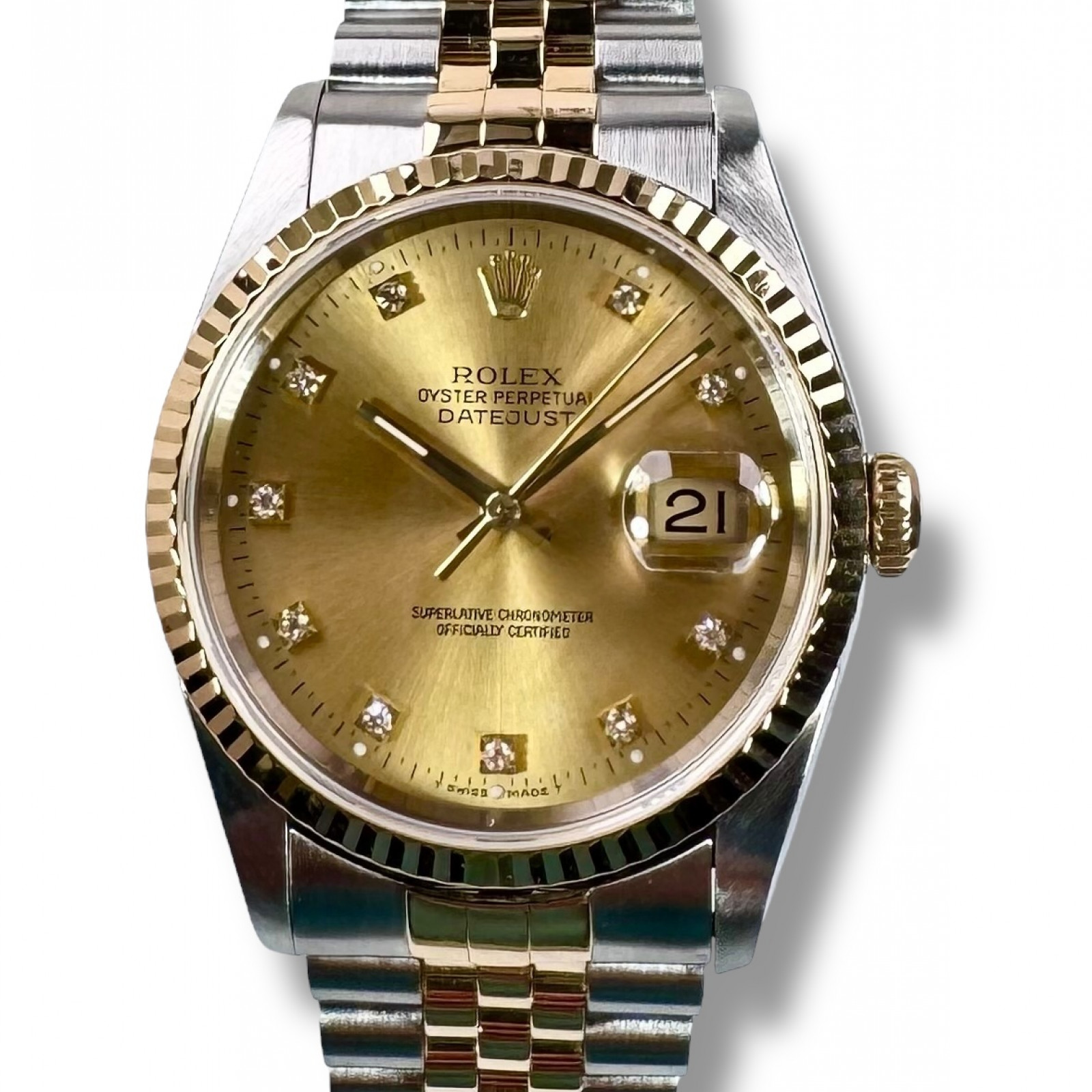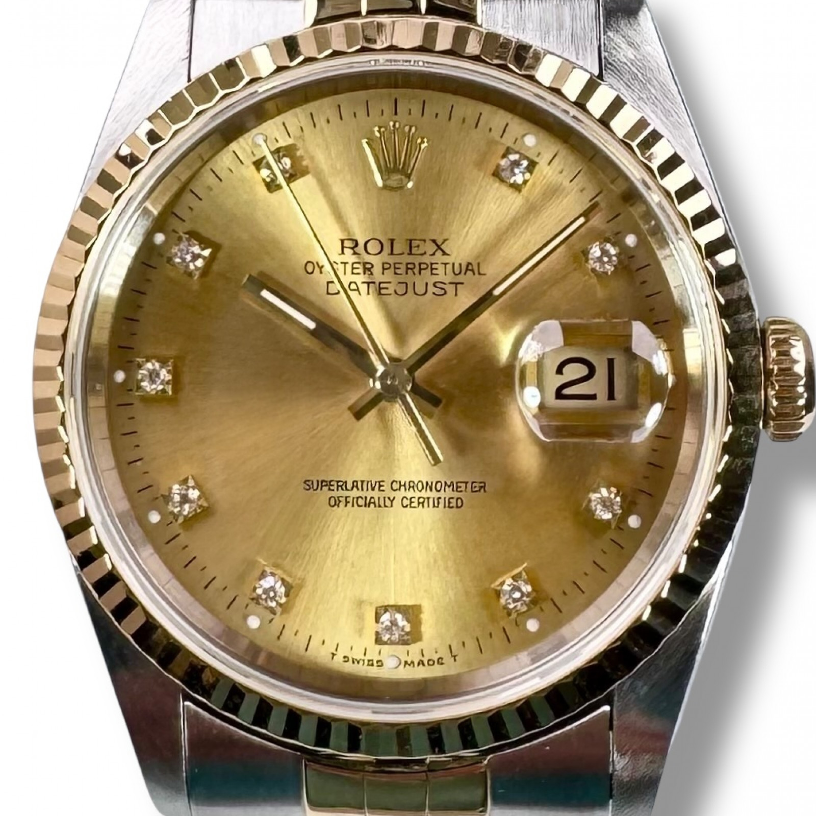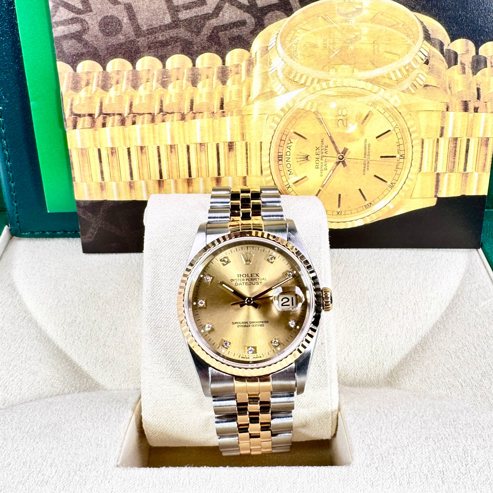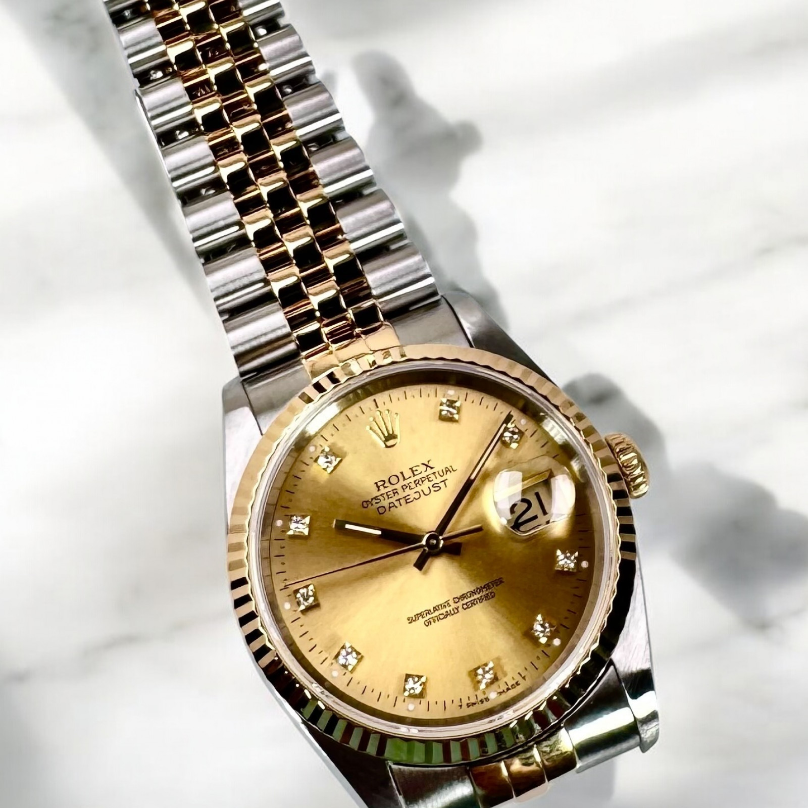 The Rolex 16233 Datejust with the Champagne Diamond Dial epitomizes the perfect melding of Rolex’s legendary quality with revolutionary technology, aesthetic allure, and historical significance. Owning this watch is more than just adding to your fashion accessories; it provides you with the remarkable opportunity of cherishing a masterpiece of timeless horological brilliance, thereby enhancing the value and elegance of your personal collection.