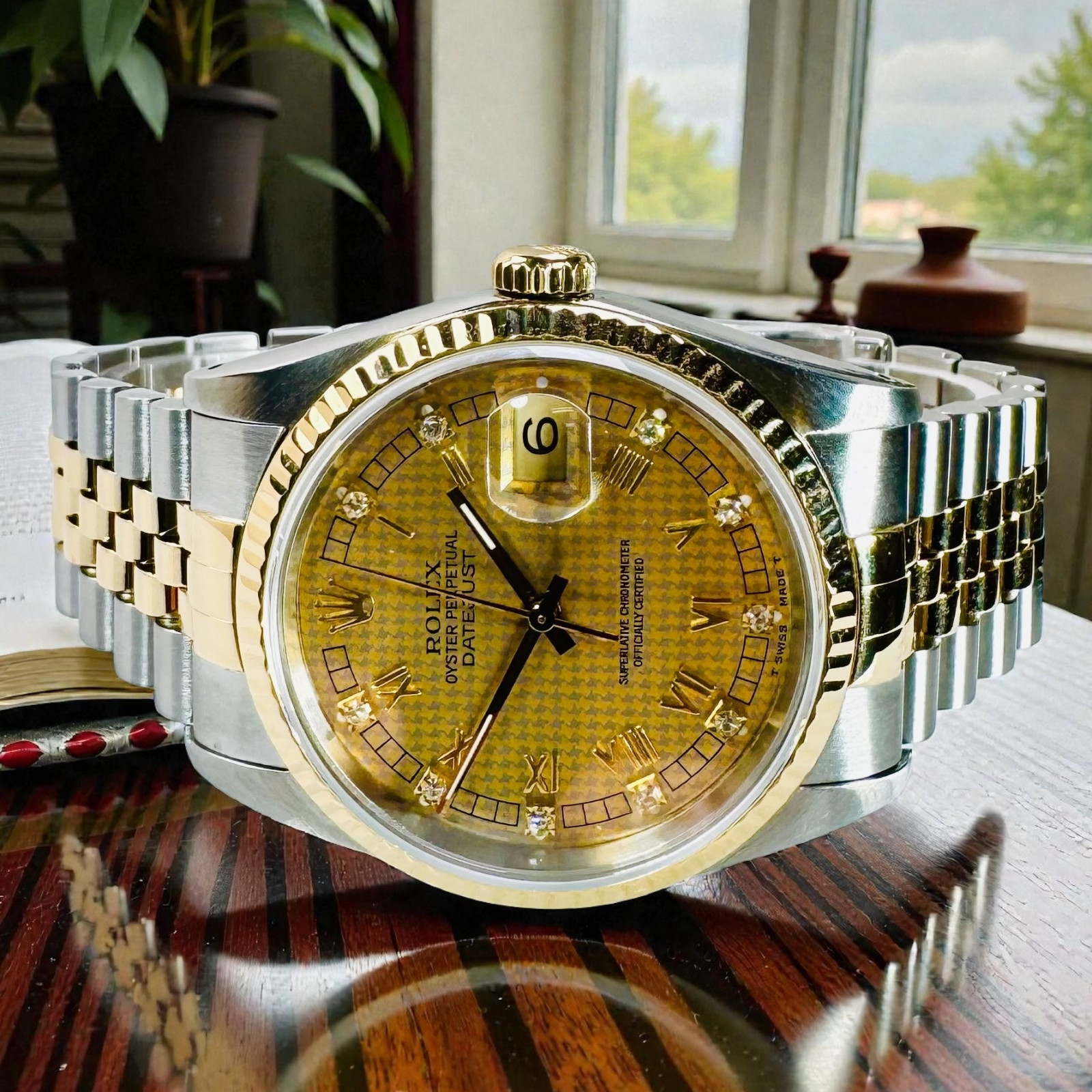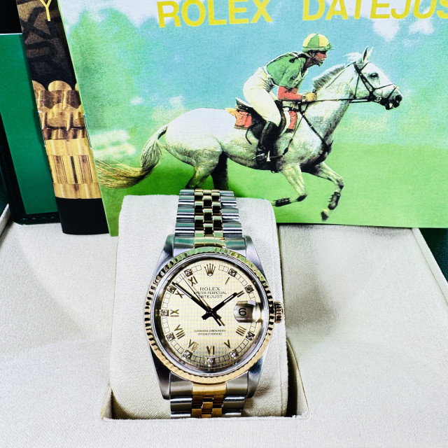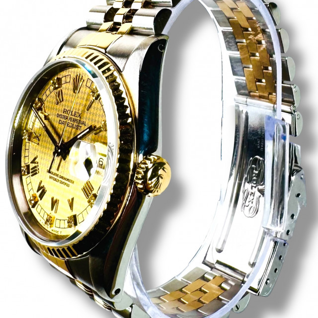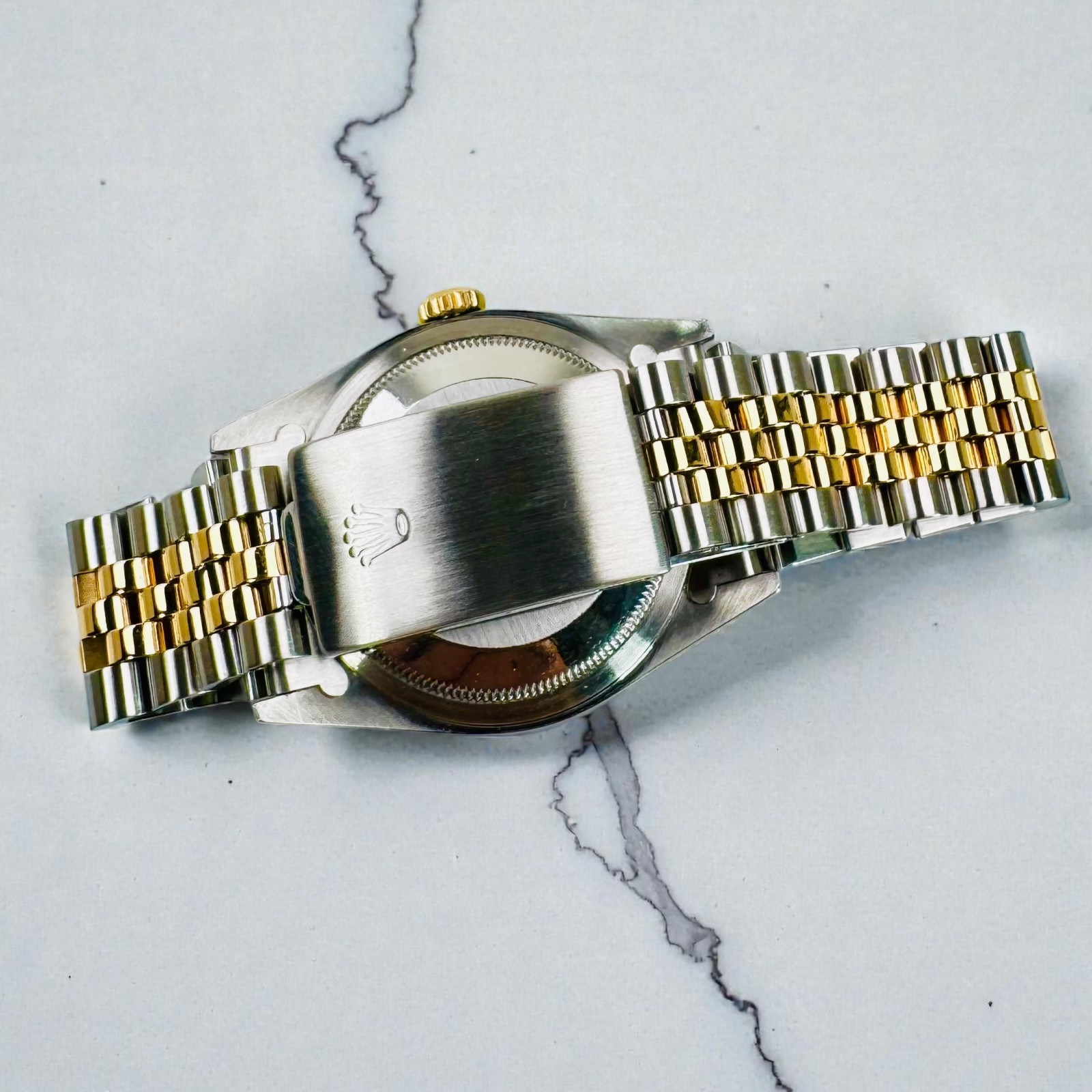 Aside from its internal brilliance, the Rolex Datejust does not compromise in delivering a remarkable exterior spectacle. The crowning jewel - the 16233 model, flaunts an intricately crafted Jubilee stainless steel bracelet paired with an opulent 18KT Gold bracelet Number 62523. These integral elements not only elevate the overall magnificence of this valuable timepiece but also enhance its durability, encapsulating the watch's robustness in an aura of undeniable elegance.