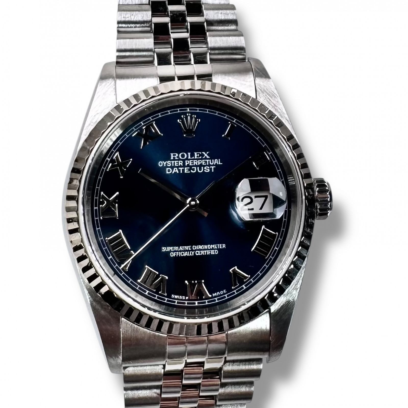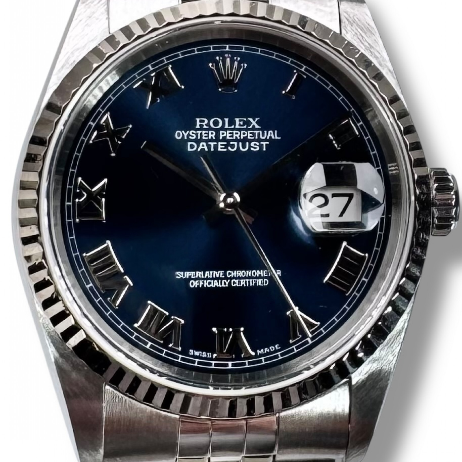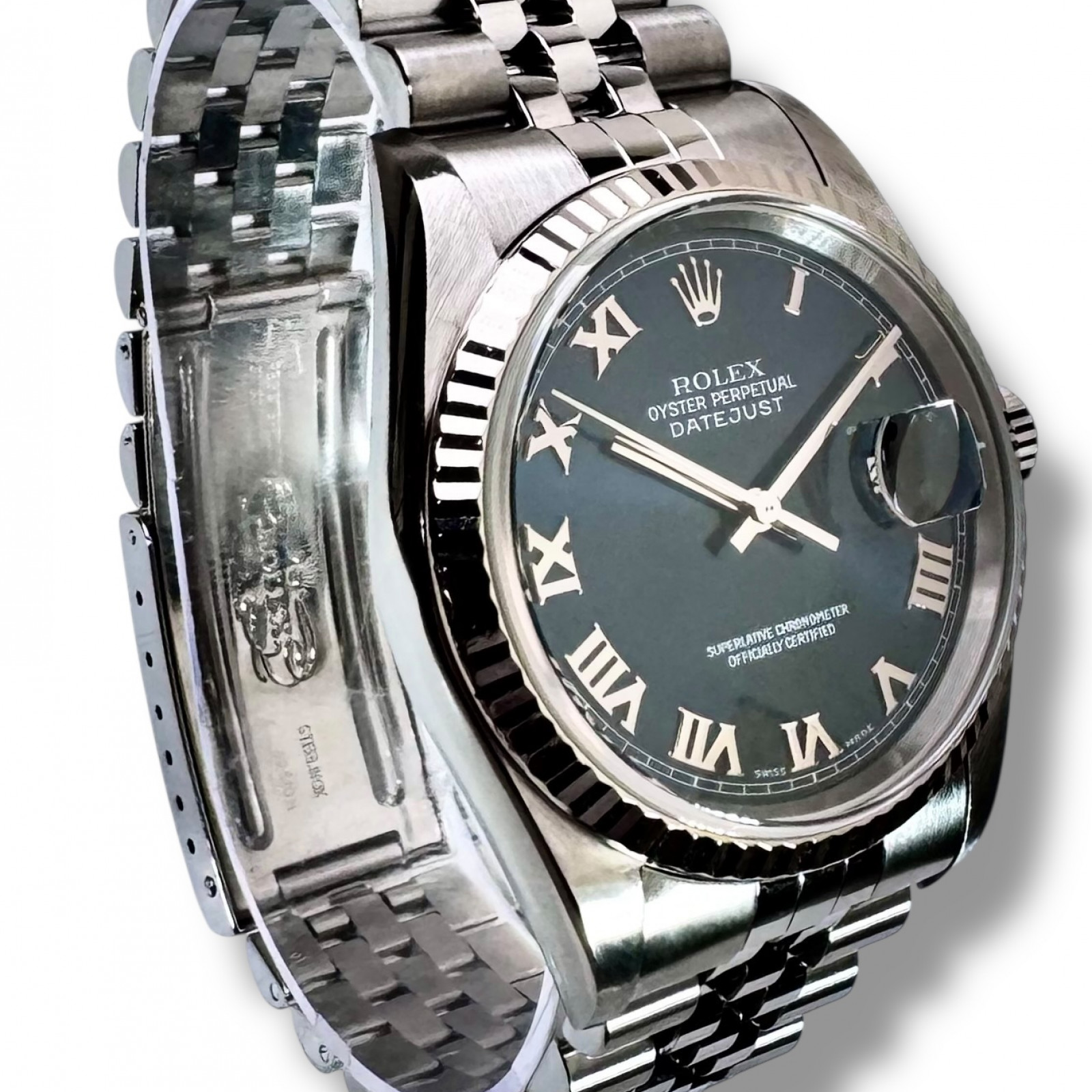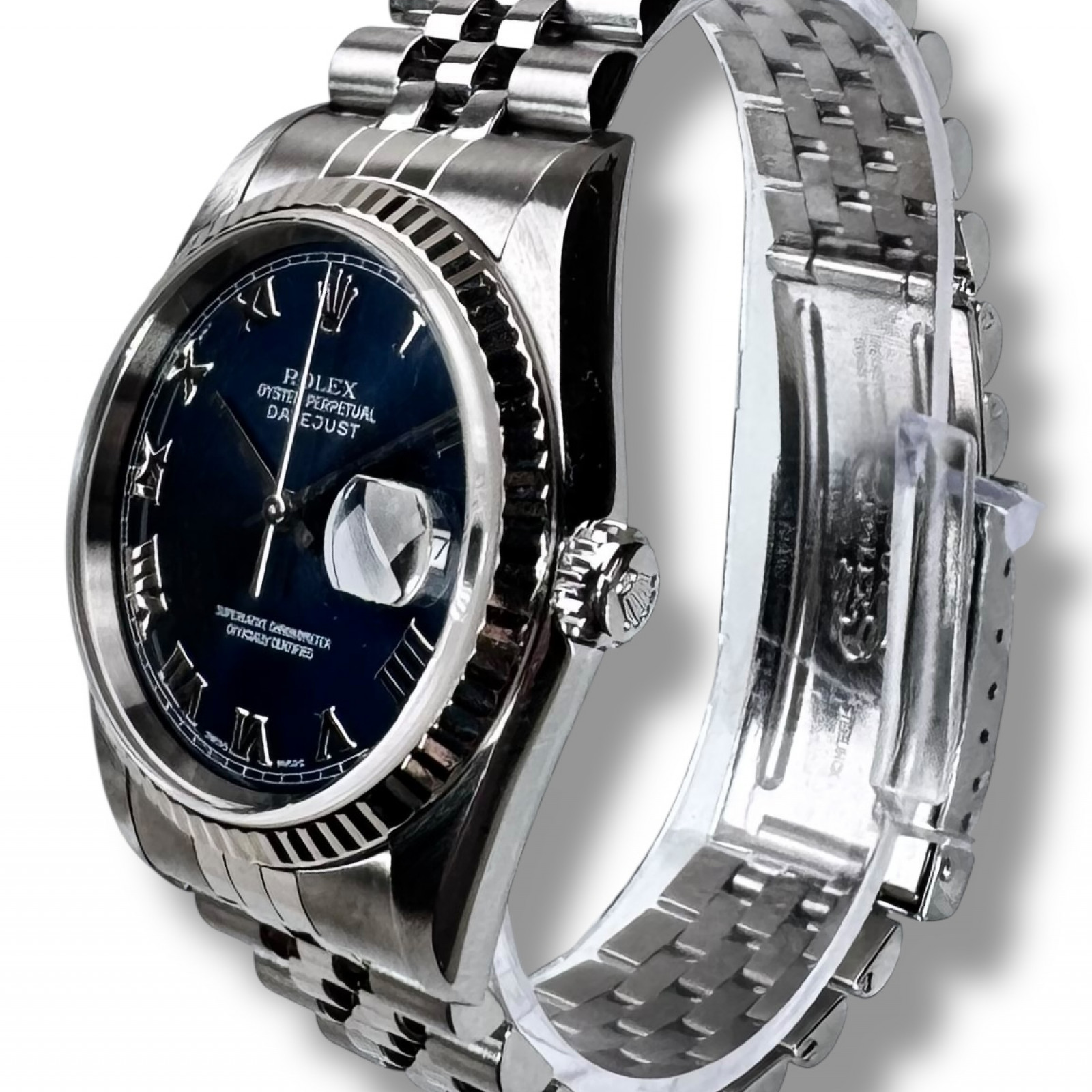 Introducing the revered and extraordinary Pre-owned Rolex Datejust Ref. 16234, a captivating timepiece that leaves a lasting impression. This magnificent wristwatch is encased within an exceptional 18kt white gold, fluted bezel, which beautifully captures the undeniable allure and grandeur associated with the esteemed Rolex brand. Elegantly crafted from top-tier stainless steel, its superb construction underscores a deep-seated respect for the luxury watchmaking industry, further elevating its comprehensive appeal and exceptional uniqueness.
