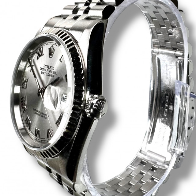 Meticulously assembled by Rolex's seasoned artisans, this brilliant iteration astoundingly pronounces its grandeur with a flawless and radiant 36 mm Oyster case. Providing the perfect protector for the heart of the watch—its automatic movement, this beautifully crafted case is driven by the world-acclaimed Calibre 3135. Receiving resounding accolades from avid watch connoisseurs and professional horologists for its superior timekeeping accuracy and remarkable durability, the Rolex Datejust Ref. 16234 certainly underpins Rolex's exceptional commitment to quality and precision.