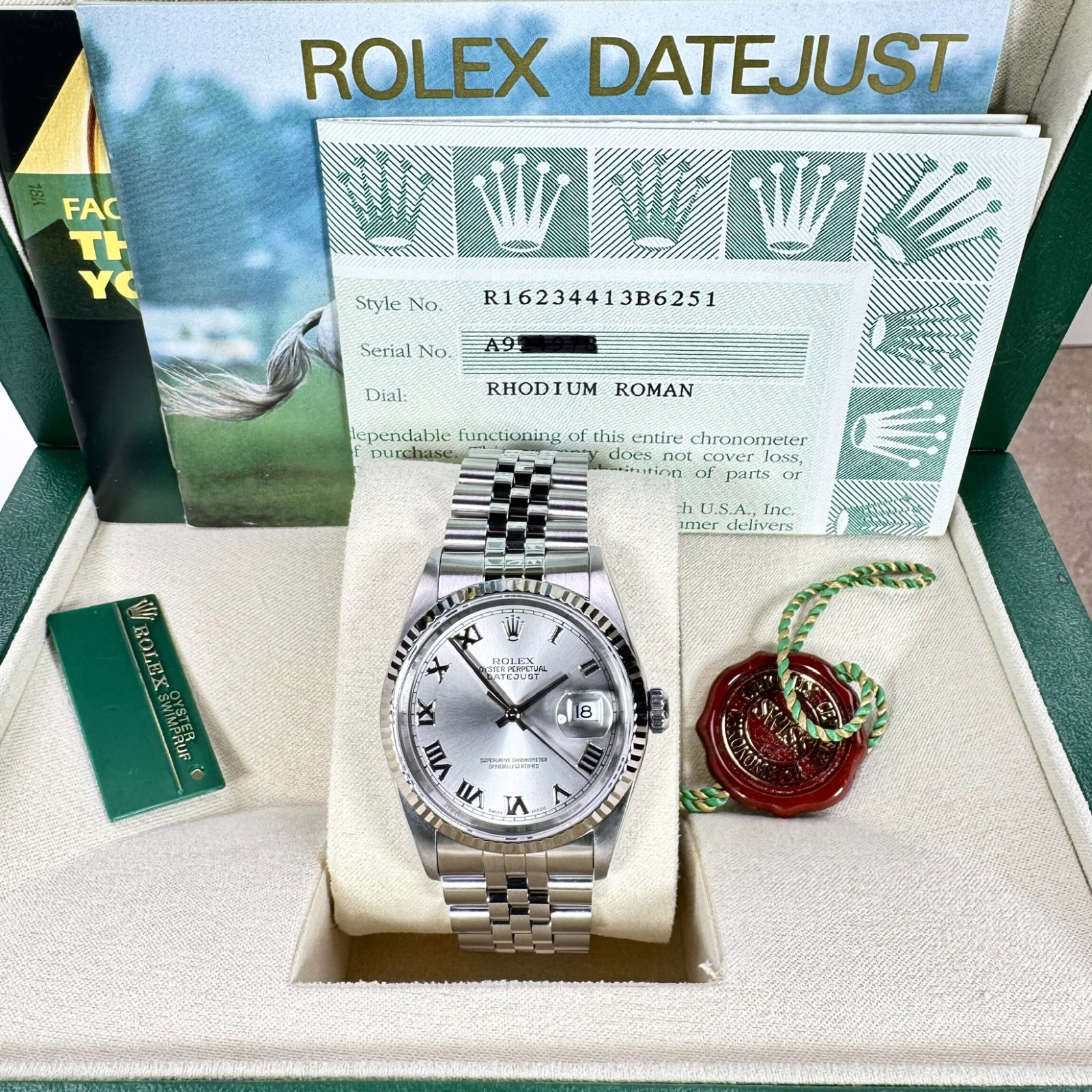 Introducing the highly esteemed and remarkably stunning Pre-owned Rolex Datejust Ref. 16234, a mesmerizing timepiece that leaves an enduring, unforgettable imprint. This splendid wristwatch is one that champions superior style, remarkable craftsmanship, and mechanical perfection, serving as a testament to the excellence and legacy of the Rolex brand. It has firmly established itself as a symbol of luxury, proving that incredible attention to detail and unwavering dedication to quality can yield a timepiece that stands the test of time.