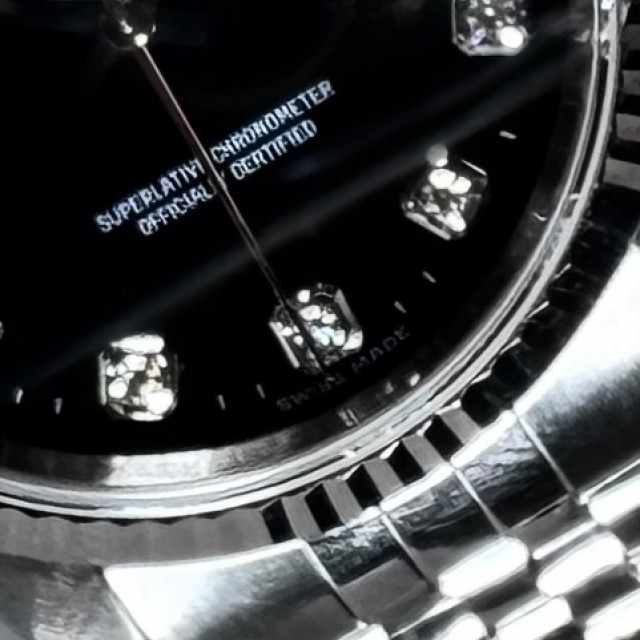 Nestled securely within the timepiece’s framework is a sophisticated black diamond dial, manufactured to perfection. The sublime interplay of this exquisite feature with the rest of the watch enhances its charisma, rendering it a bona fide piece of art. Meticulously constructed utilizing superior-grade stainless steel, the robust body of this horological achievement is quintessentially Rolex – a testament to the company's unparalleled dedication towards refined watchmaking and its unwavering allegiance to unprecedented luxury.
