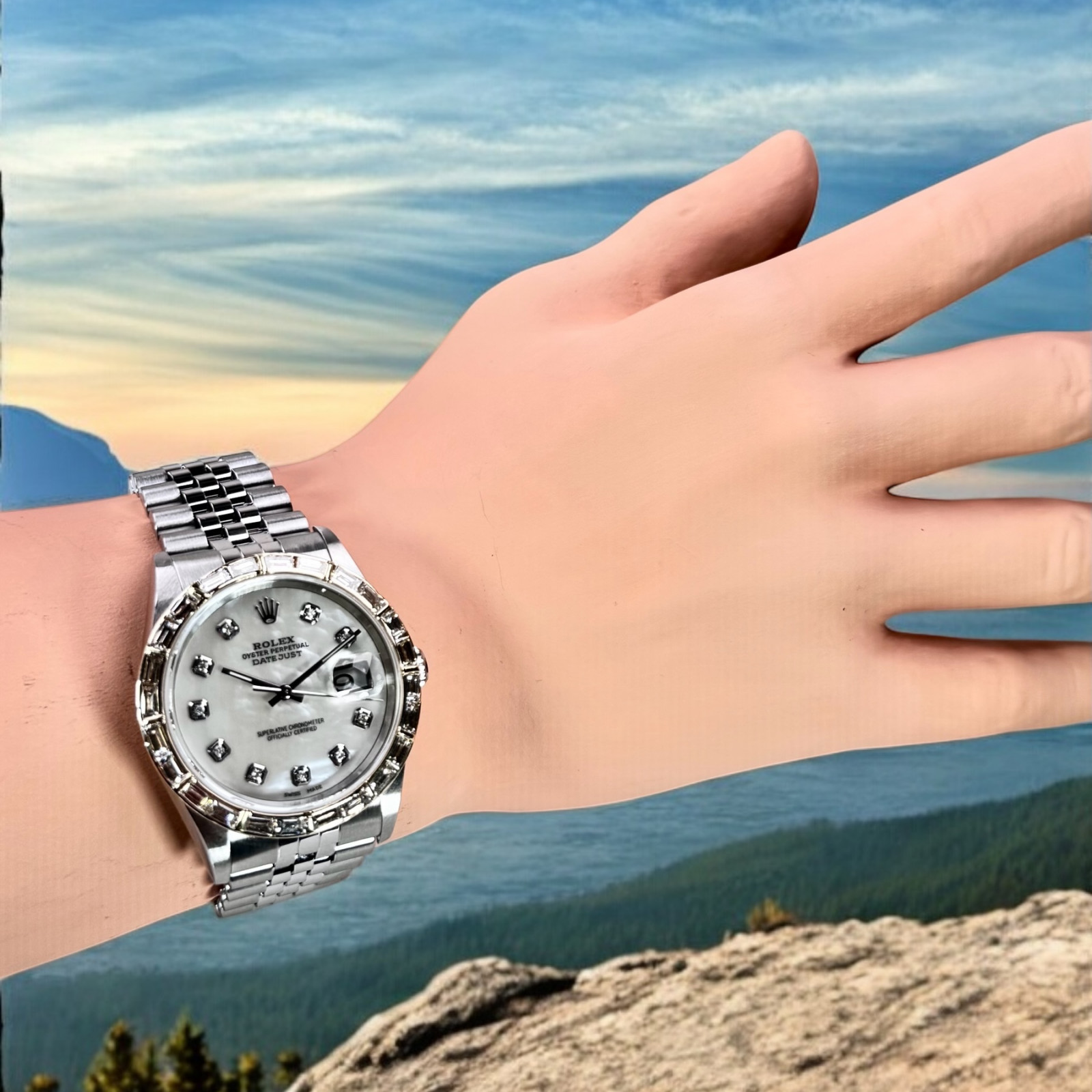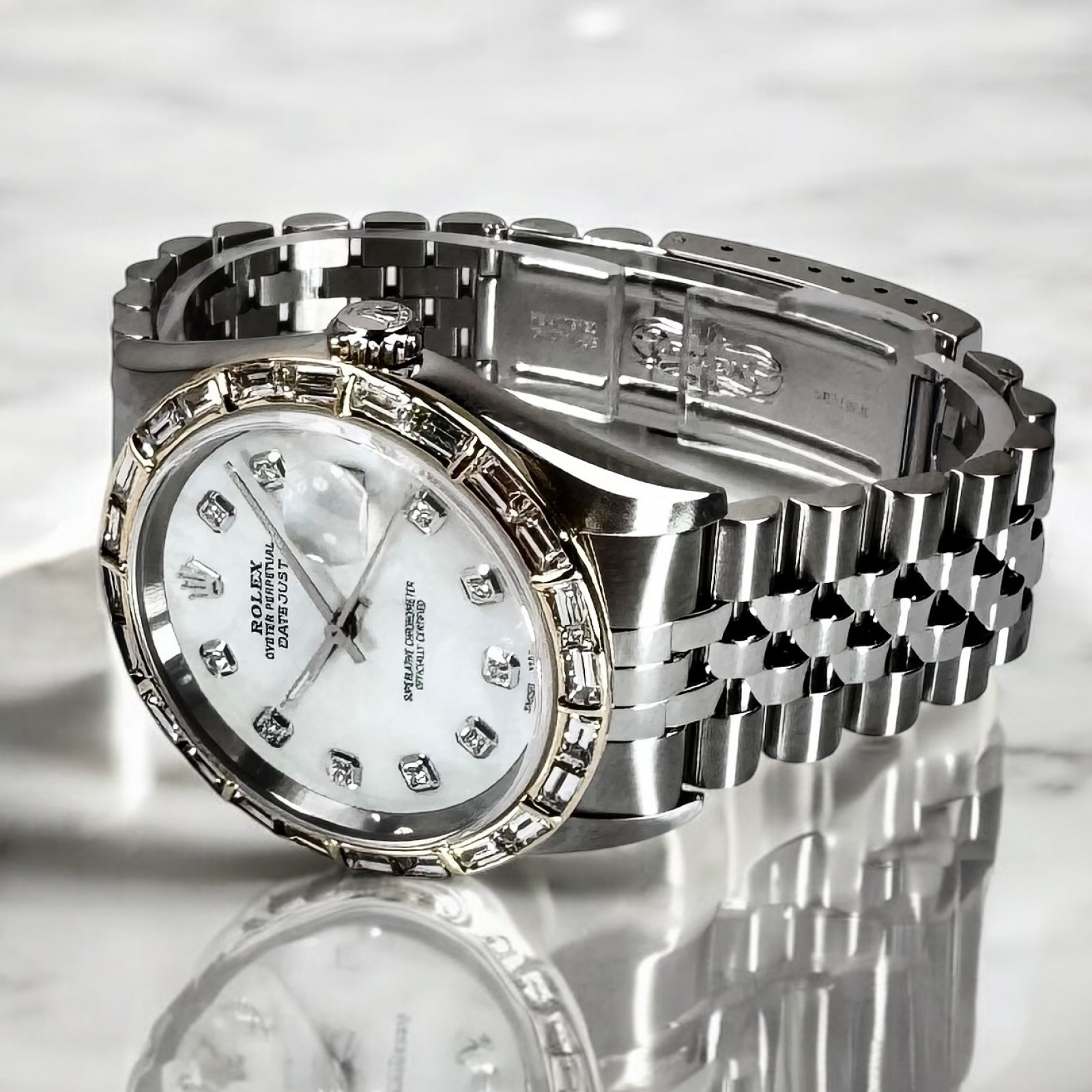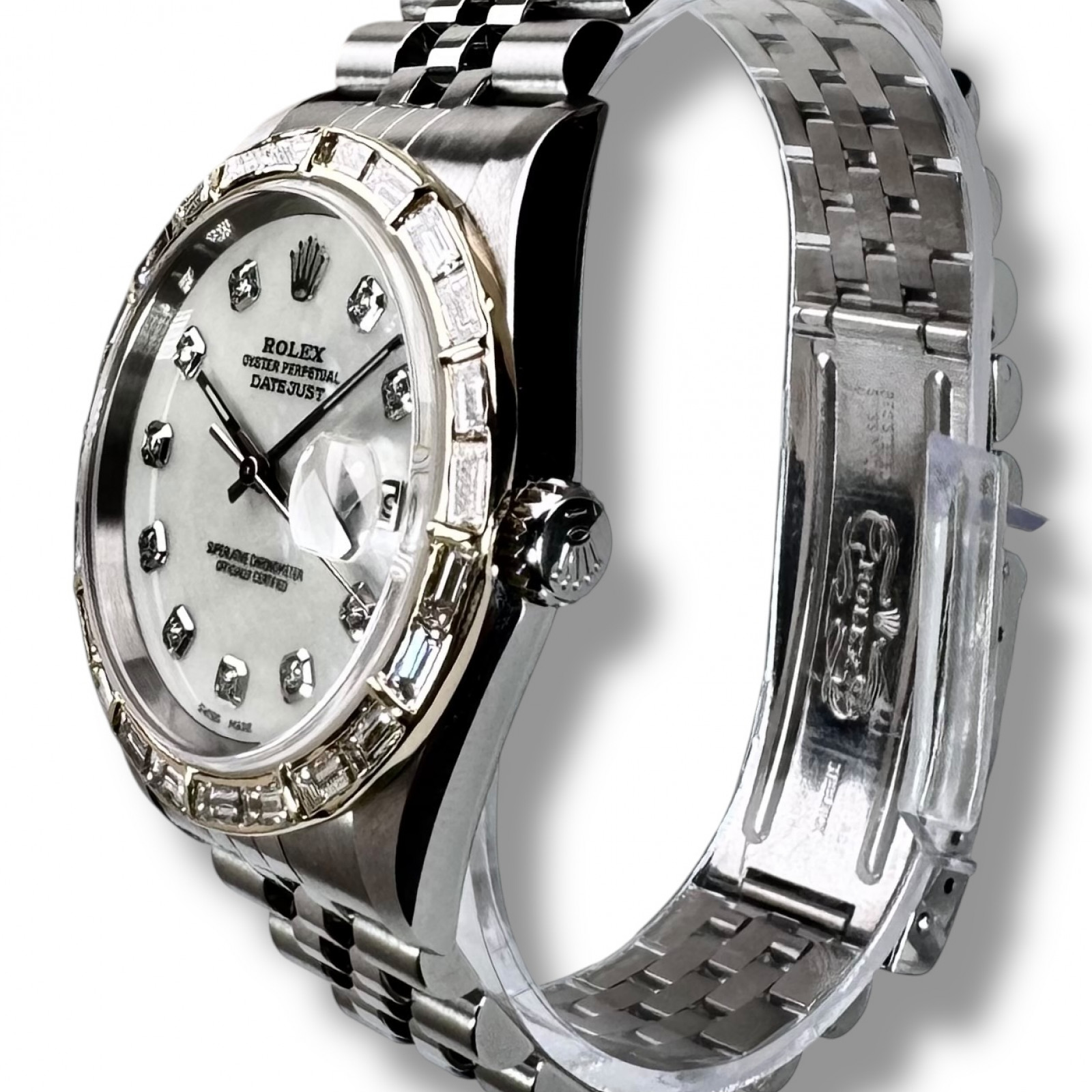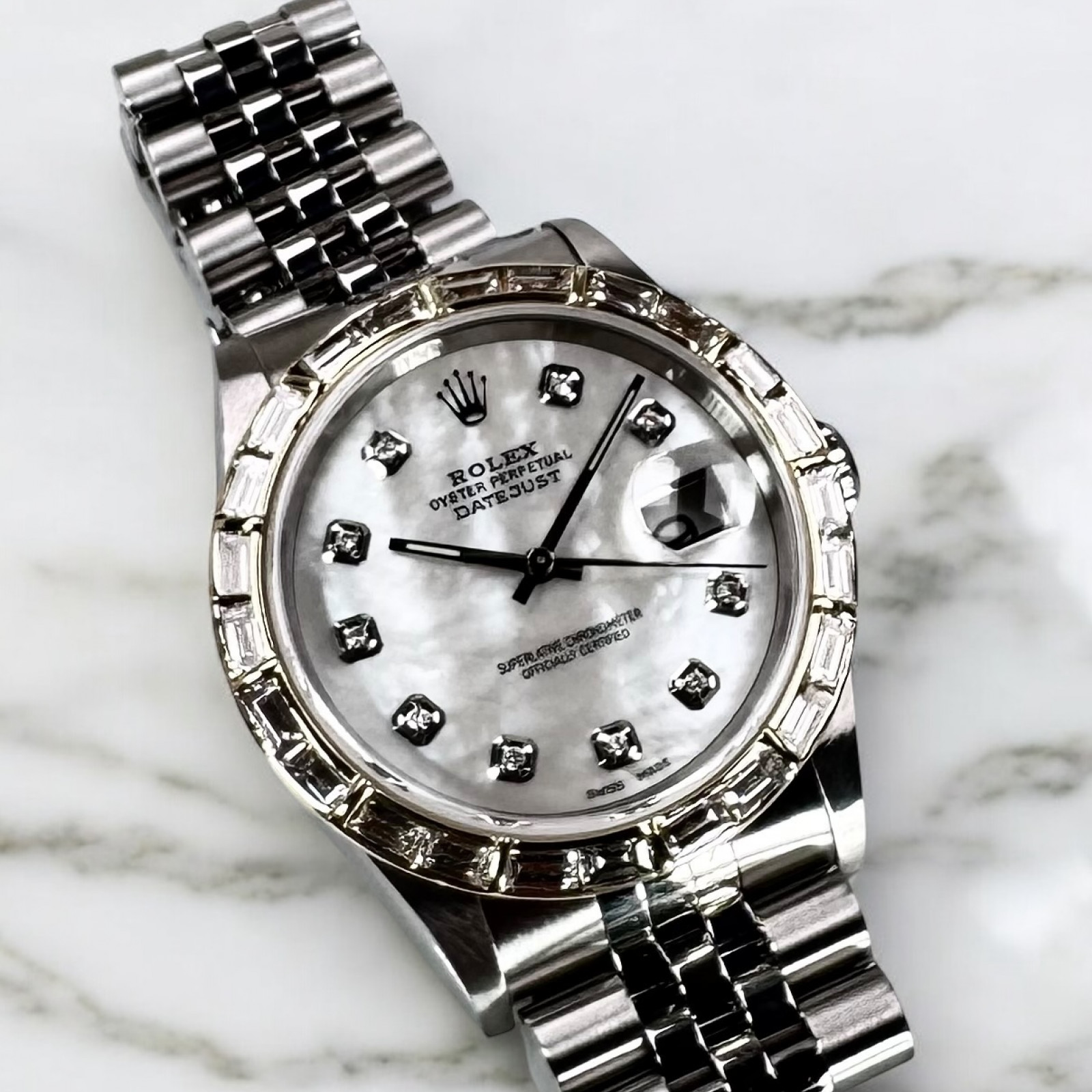 | Dial: | White, Mother Of Pearl, Diamonds Markers, Custom |