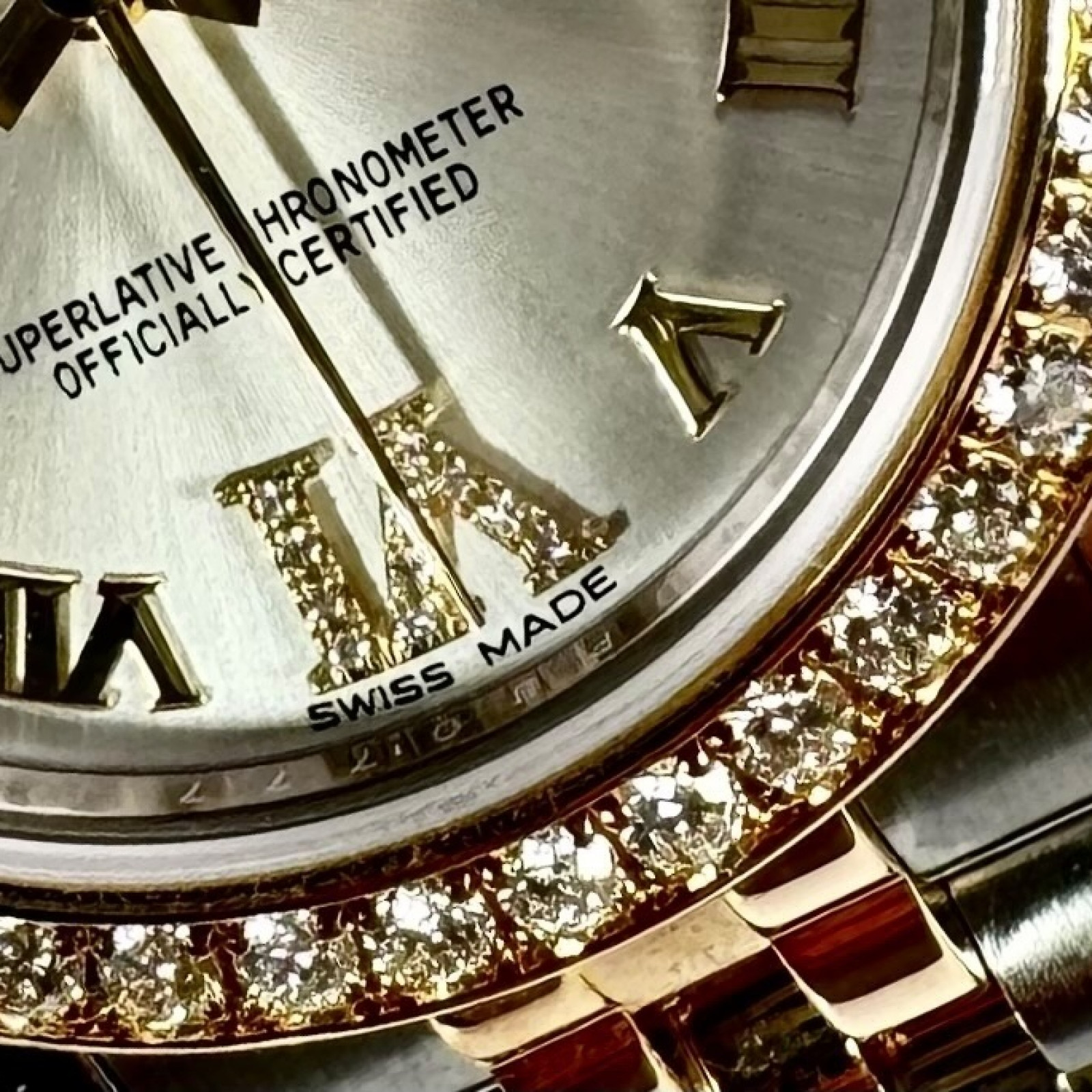 The diamond bezel is brilliantly set, offering an allure of utmost elegance. Tightly arranged and precision cut, each diamond contributes to the sublime sparkle and grandeur the watch emanates. The 178383 edition is synonymous with high-end luxury –a signature of the Rolex brand.