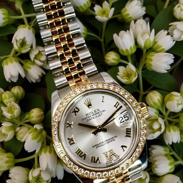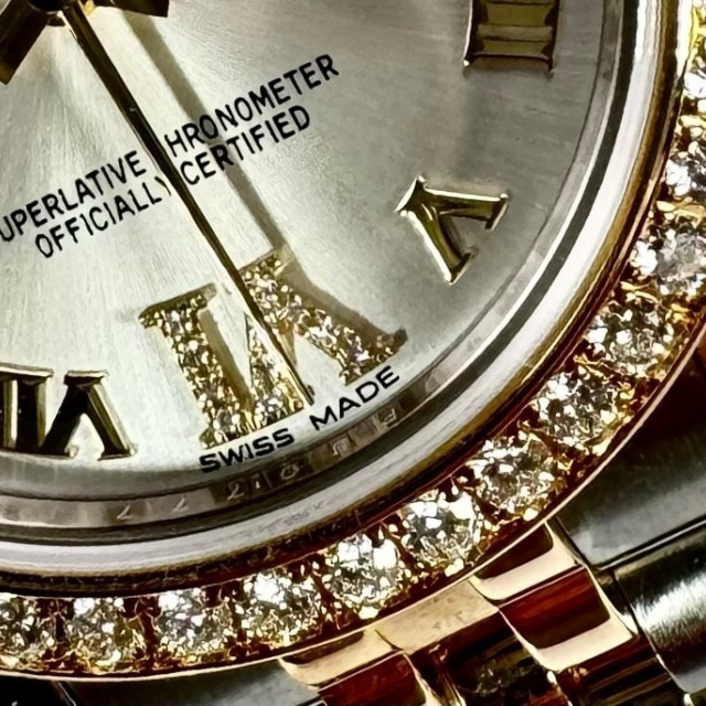 This majestic Rolex model is a sublime demonstration of clockwork engineering brilliance, paired with awe-inspiring aesthetics. Adorned with the shining brilliance of diamonds and made with supreme skill, the Rolex model 178383 promises nothing less than sheer visual and functional brilliance.
